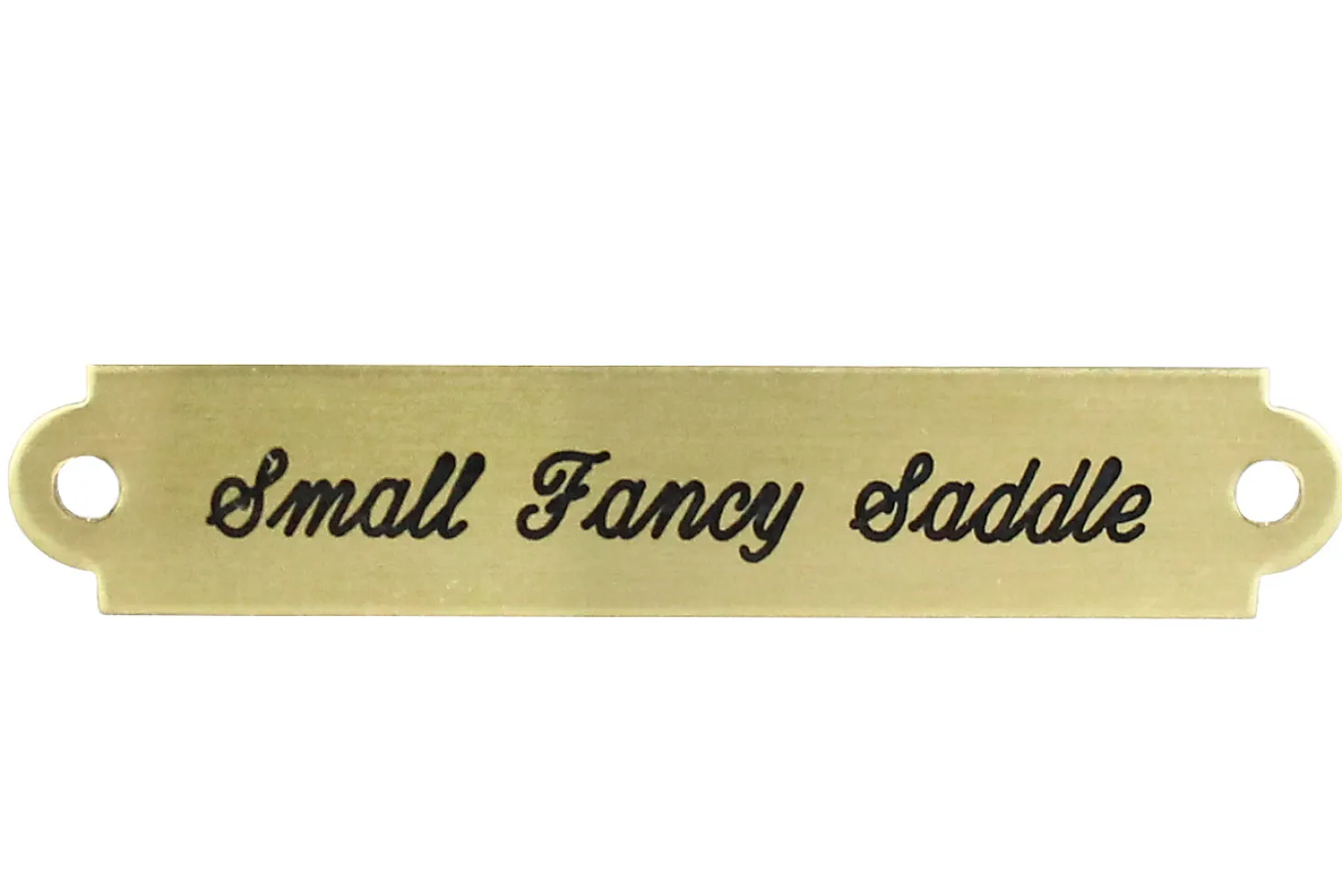 Personalize your saddle the classic way with our 2″ Fancy Saddle Nameplate in brass or German silver. Your plate will be engraved in the USA in your choice Block, Old English, Roman or Script letters with your name or your horse’s name.