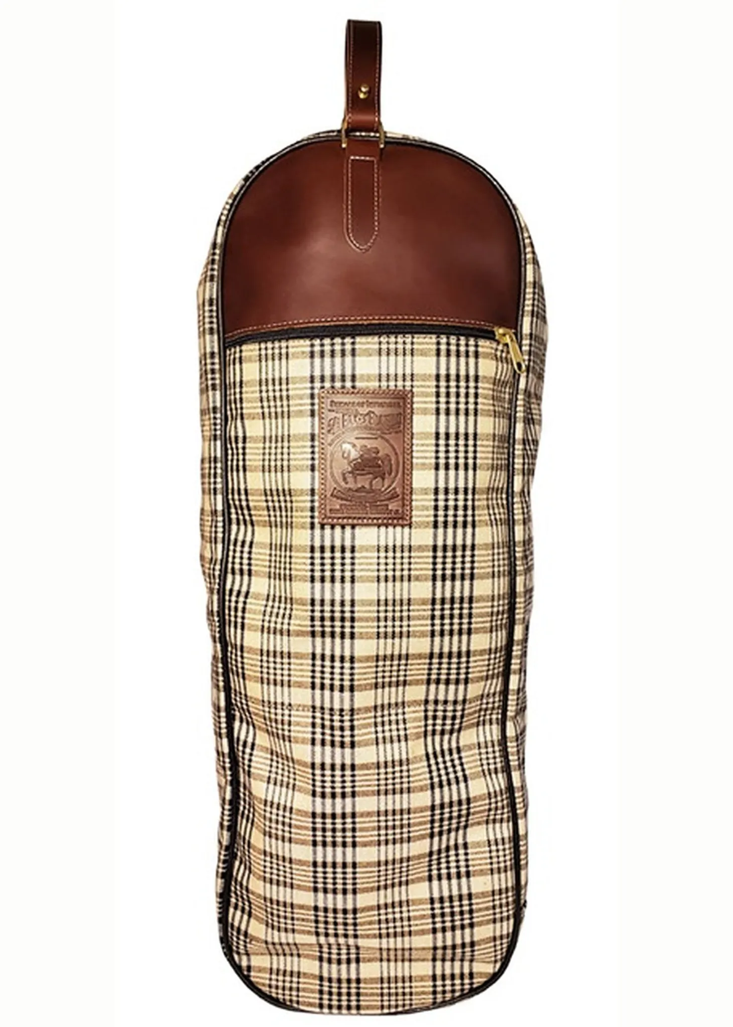 Carry, store and protect your horse’s bridle and bit with style! This 5/A Baker® Bridle Bag is made from the famous, durable 5/A Baker Sheet material and trimmed with fine-quality bridle leather. Zippered opening to the storage compartment; top loop for hanging.