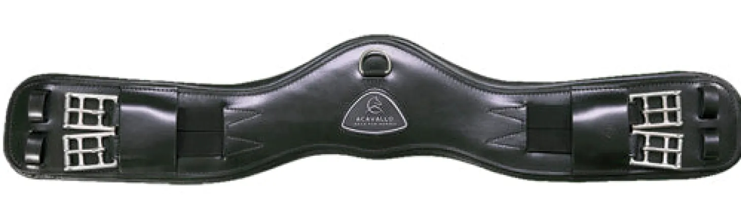 The beautifully crafted Acavallo® Shaped Gel Girth combines a calfskin leather outer and an innovative Acavallo gel panel insert to provide soft distribution of pressure. This softly padded girth is also anatomically shaped to avoid interference with your horse’s elbows, which could impede movement. Elasticized straps provide give, and center D-ring for attachments.