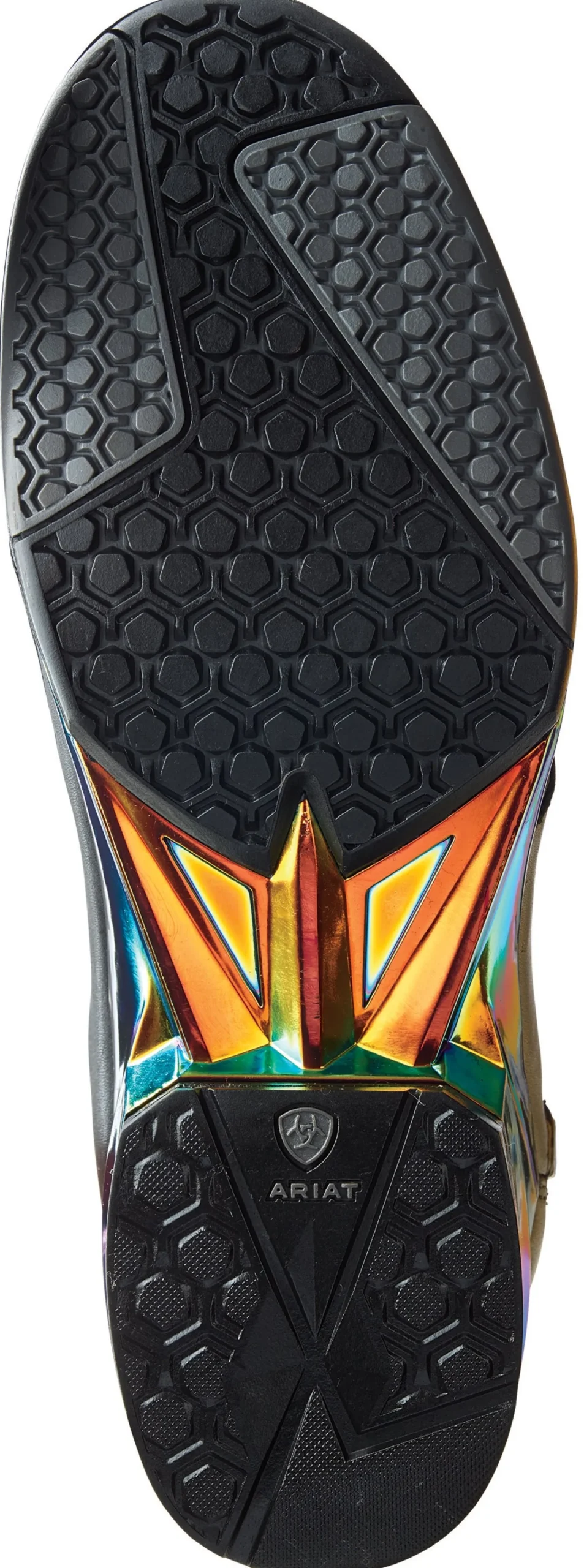 Comfort features include a moisture-wicking sock liner and an elasticized instep insert. Ariat’s Advanced Torque Stability (ATS®) technology offers all-day support and helps prevent fatigue. The Duratread™ outsole resists barnyard acids and provides traction. Ariat branded snap.