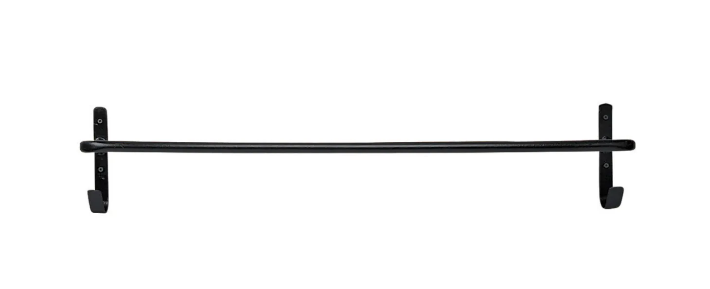 The Blanket Rack with Hooks not only holds your horse clothing, but catches halters or other items, too, on its two sturdy hooks. This blanket bar with hooks is made of durable 18 mm steel tubing with an attractive and durable black-coated finish. Mounting hardware not included. 35″W; bar projects 8″ from wall; hook projects 2 1/2″ from wall.