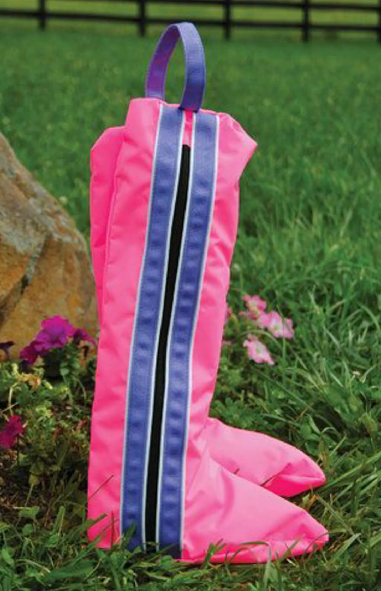 The Custom Children’s Unlined Two-Piece Boot Bag by Tally Ho keeps tall riding boots shiny and scuff-free. Each boot fits into a separate nylon bag to prevent rubbing. The bags are held together with a carrying strap that’s long enough to be slung over the shoulder. Boot portion is 22″H x 14″ diameter; foot is 13″L. Choose the bag color and trim color. A monogram will make it all the more special! Allow 4-6 weeks for delivery.