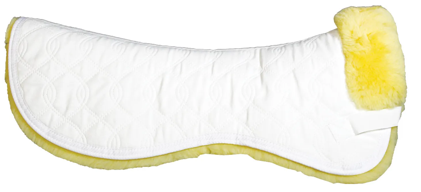 The Christ HorseDream Half Pad is a superior quality half pad with a high-withers cut, quilted cotton top and a genuine lambskin lining. The therapeutic importance of lambskin for the horse’s back is remarkable. It allows a saddle to be firmly fixed and shaped to the back and helps promote circulation, temperature balancing and saddle pressure. Naturally moisture-wicking, it promotes the horse’s comfort and aids in preventing back soreness.