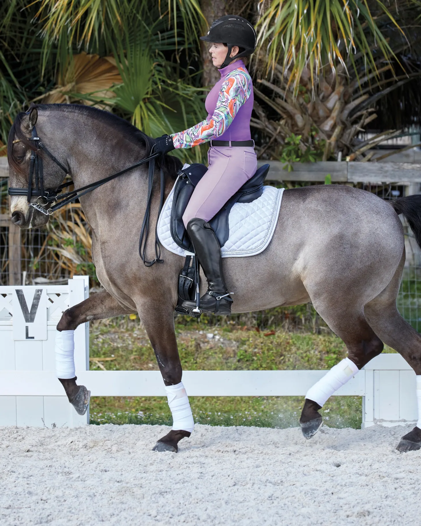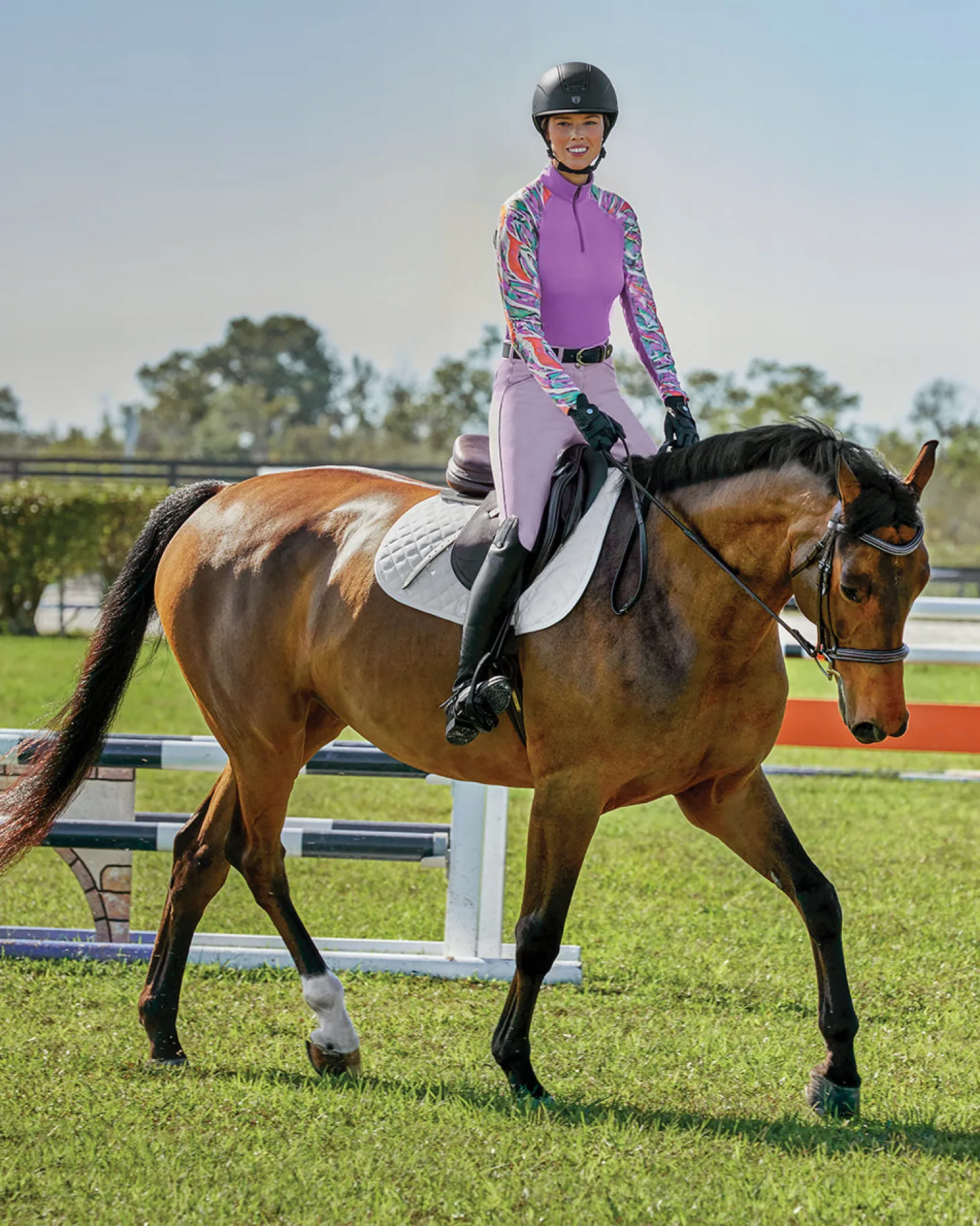 Our CoolBlast® 100 Ladies’ LaBelle Print Long Sleeve Shirt features a beautiful watercolor design on the sleeves and collar. Constructed with raglan sleeves, it offers athletically inspired freedom of movement at the shoulders. Our superior cooling fabric makes this riding top ideal on sunny days as it provides UPF 100, blocking 99.89% UVA and 99.93% UVB rays to shield your skin.