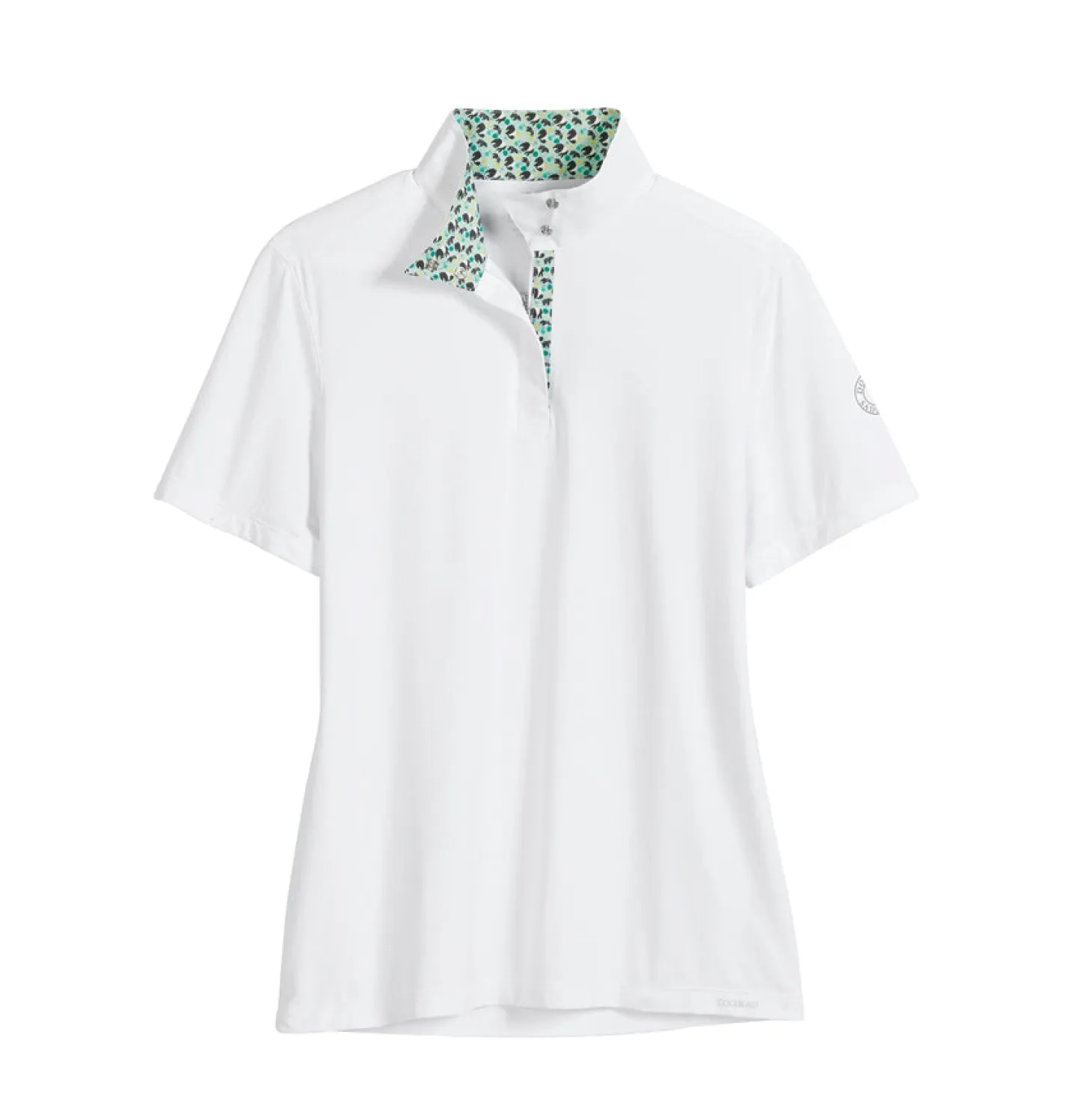 Permanent cooling properties built into the material let it outperform others in wicking moisture and converting it to a cooling energy to keep your skin dry. Because the functionality is part of the fabric, these properties never wash away. The shirt dries quickly and provides exceptional breathability for your ultimate show-day comfort. Patterned fabric inside the collar and placket adds a pop of fun when the shirt is worn casually.