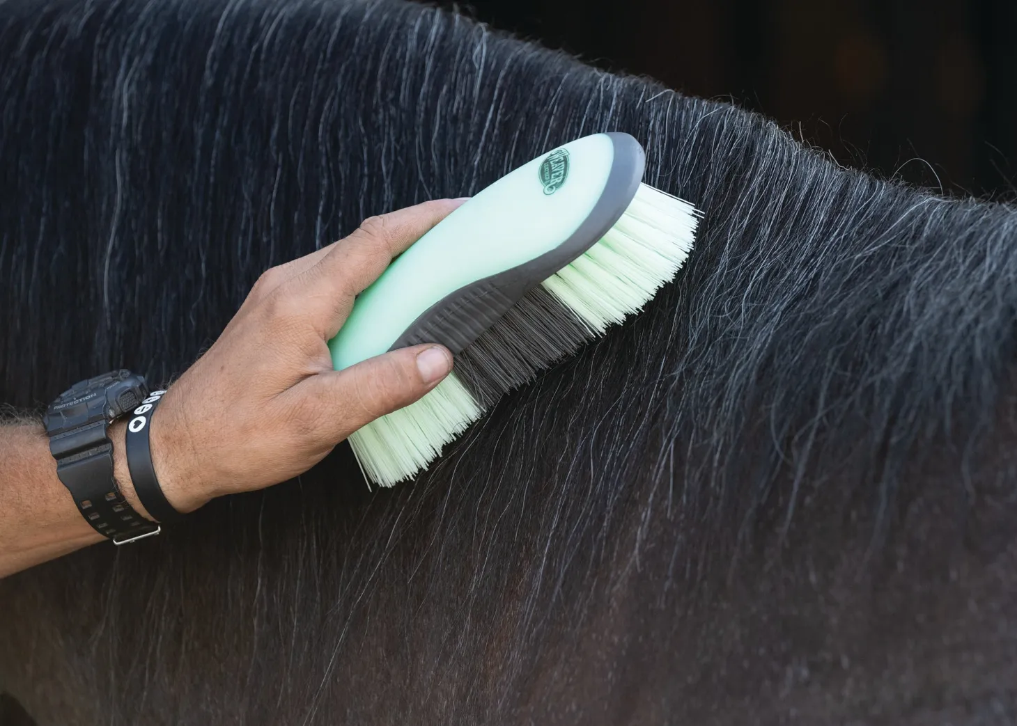Add this Dandy Brush to your essential grooming tools. It makes quick work of removing dirt and sweat and features a contoured handle for a comfortable grip.