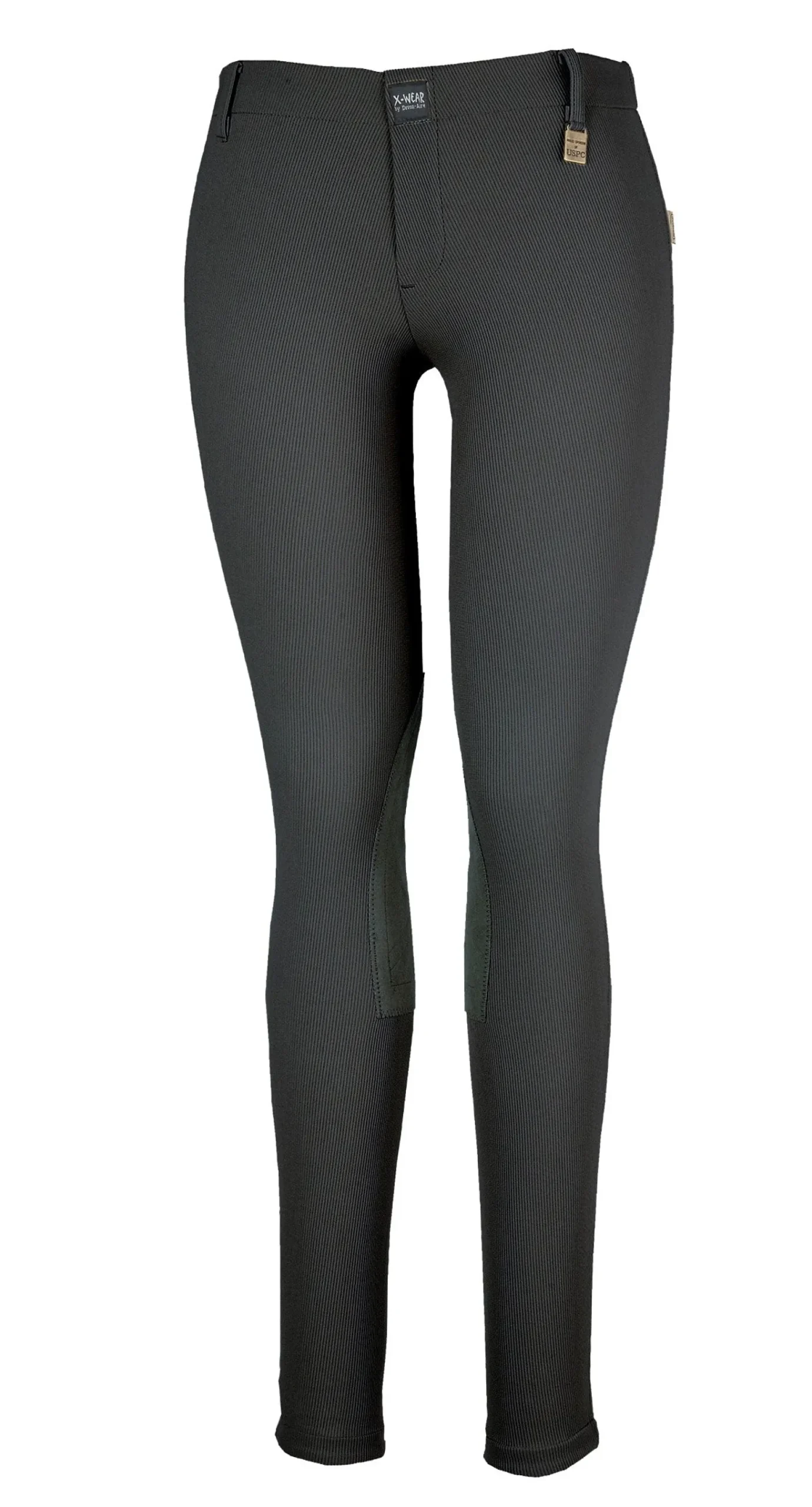 The Devon-Aire® All-Pro Hipster Breech is comfortable, soft and flattering. Made with the latest in fabric technology, the German style micro-ribbed fabric offers maximum stretch and recovery. Dev-Tek® moisture management keeps you dry and comfortable. Sewn with no uncomfortable inside leg seams, this low-rise, pull-on breech is styled with a faux fly, gripper elastic ankles and Clarino™ knee patches. Reinforced seams add durability.