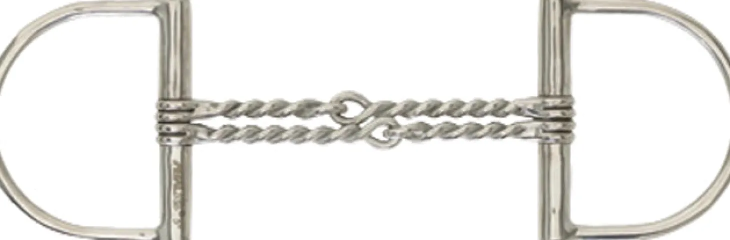 The Double Twisted Wire Pony King Dee Snaffle Bit has a mouthpiece comprised of two strands of tightly woven wire. Made of stainless steel with D-ring cheeks, this bit has a design that puts pressure on the horse’s tongue, bars, lips and palate.