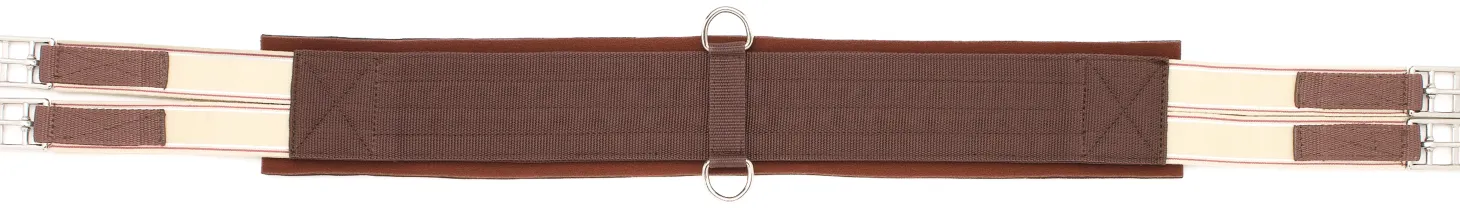 The DS Nonslip Girth has a neoprene backing that is comfortable and is easily removed for cleaning. Center D-rings for attaching training aids. Elastic at both ends and roller buckles evenly distribute pressure and make tightening easy.