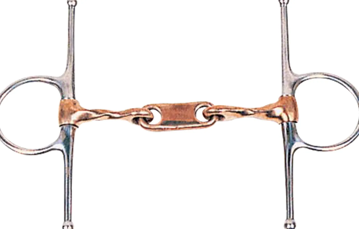 The DS Twisted Copper Dr. Bristol Full Cheek Bit features a flat center link. Stainless steel full cheeks.