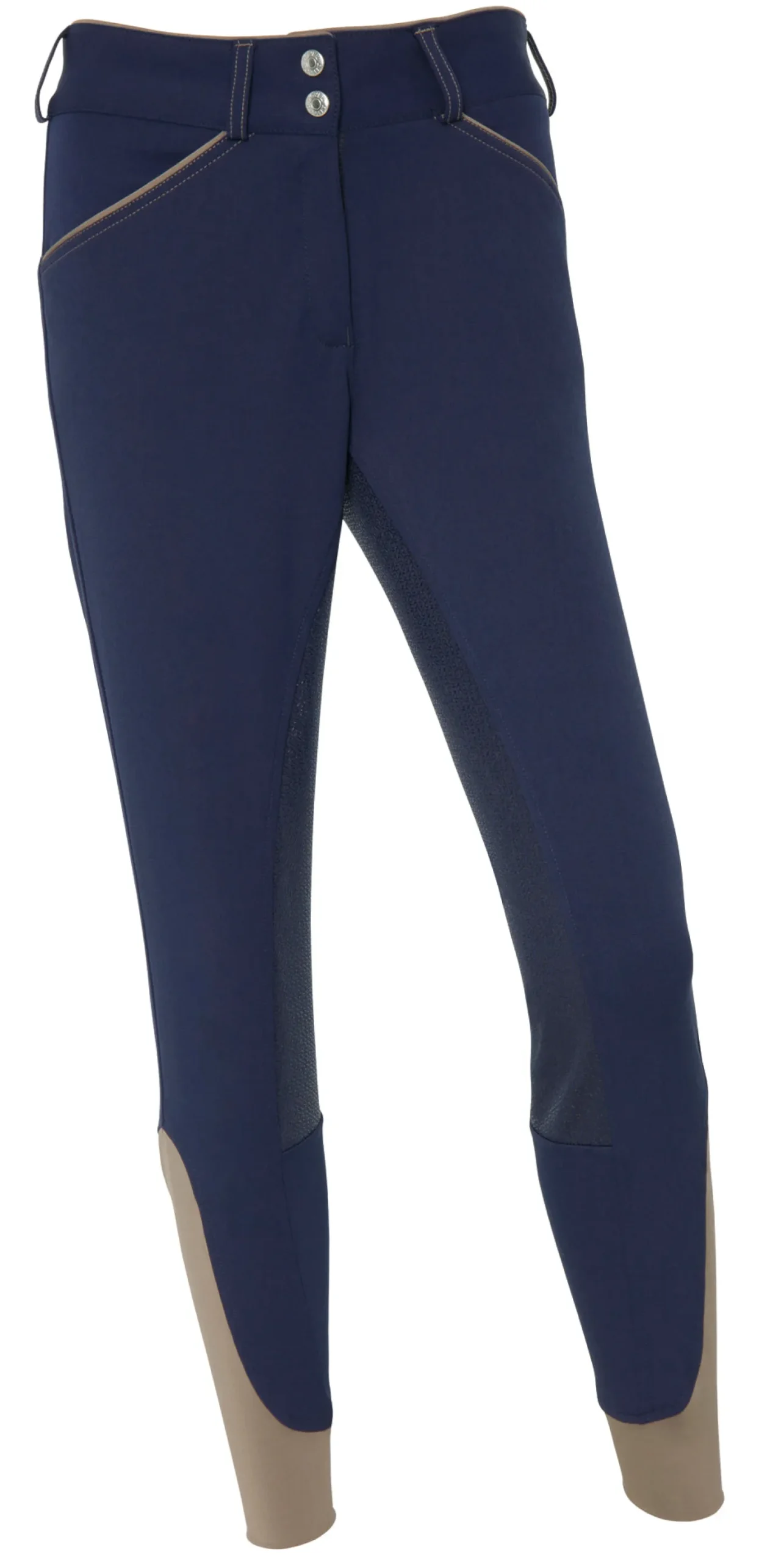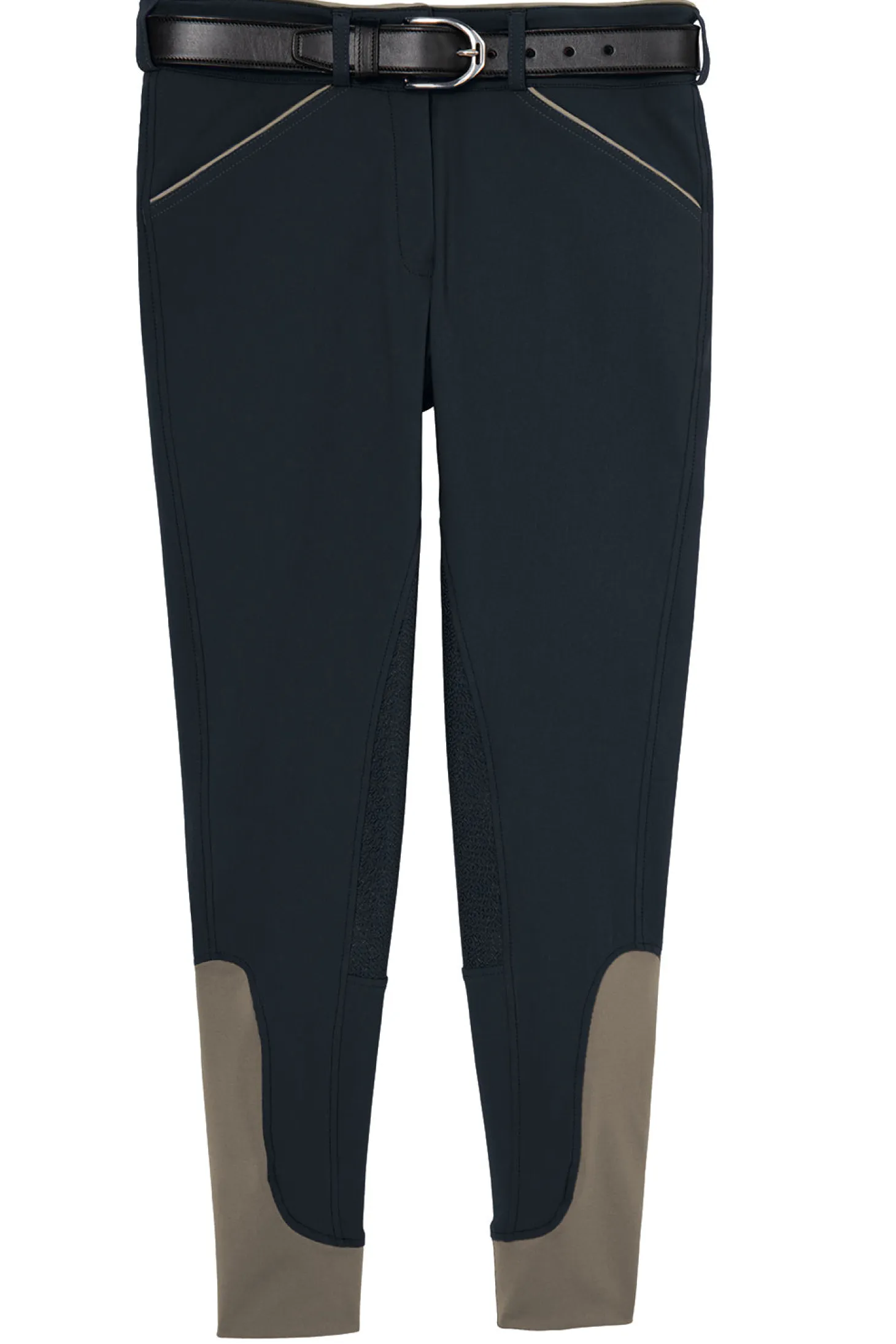 This breech also boasts the mid-rise EquiTrue Rise™, a unique cut that allows it to maintain a flattering, secure fit, staying true to your form as you ride or bend to groom. No matter how you move in the saddle or out, a soft, covered waistband and seat won’t slide, slip, pinch or bind—you’re free to think about more important things than yanking and tugging your breech for modesty.