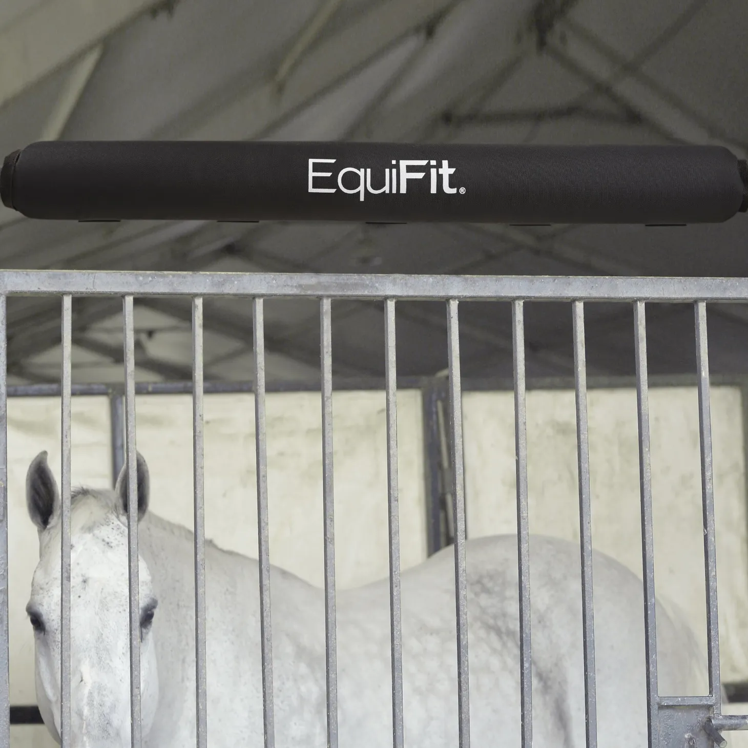 Designed for shows with temporary stabling, the impact-absorbing EquiFit® StallBumper wraps around the bar above a stall door. Durable, tear-resistant nylon covers foam to help protect your horse’s head. Hook-and-loop closures keep it secure.