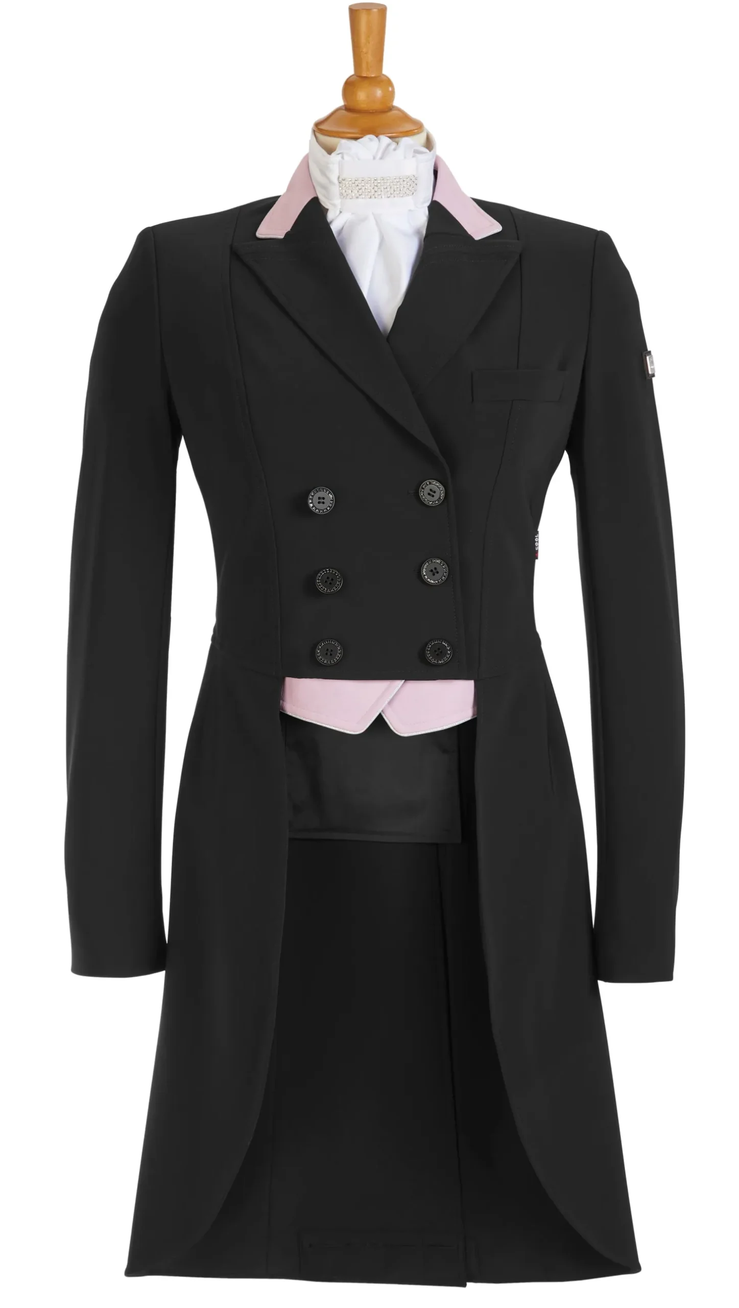 Equiline X-Cool Evo performance fabric with four-way stretch is extremely comfortable and resilient. It offers high breathability, water-repellency and easy care. The beautiful cut of this coat includes figure-flattering seaming and a back belt detailed with two buttons. Adjustable tail weights allow the perfect drape on any horse.