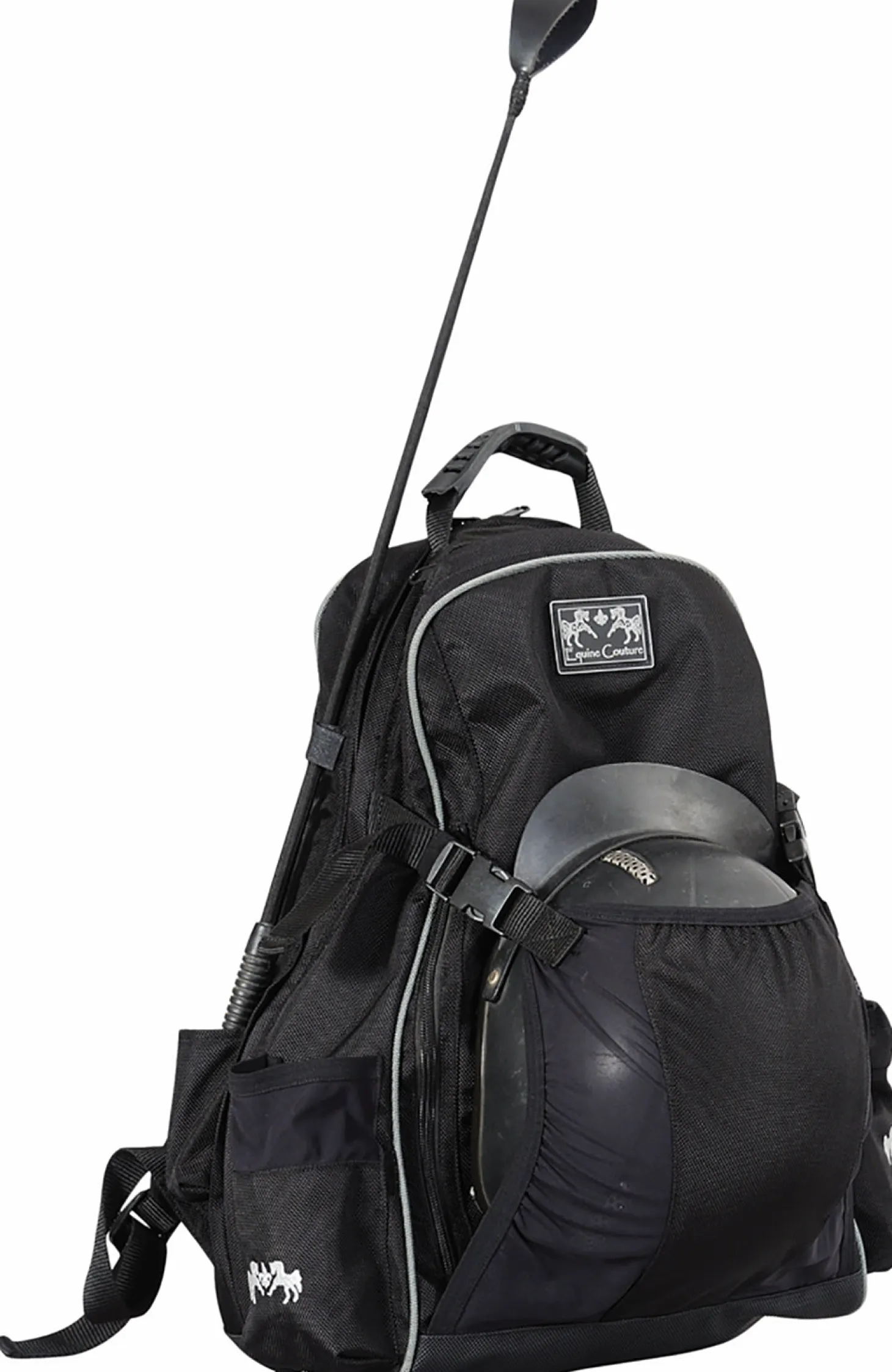 The Equine Couture™ Pro Backpack keeps your helmet, crop, wallet, cellphone and other valued possessions safe and in one place. Tired of hunting for all your equipment? Or filling your car with stuff? This bag is the solution to clutter. It is waterproof and has specialized pockets designed for equestrian equipment such as a helmet or crop.