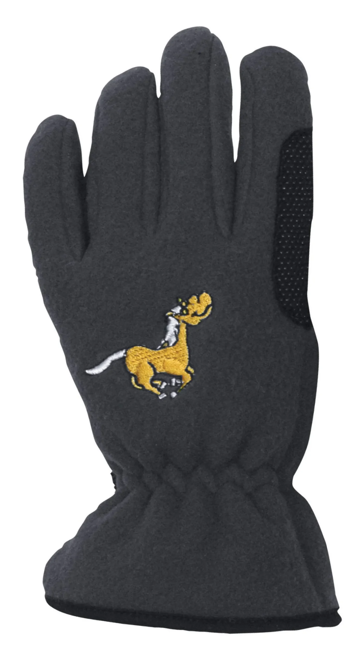 EquiStar™ Children’s Pony Fleece Gloves combine warmth with fun! Made of heavy synthetic fleece, each glove has an embroidered pony on the back of the hand. A grippy palm helps young riders hold onto reins while reinforcements on the fingers protect against wear.