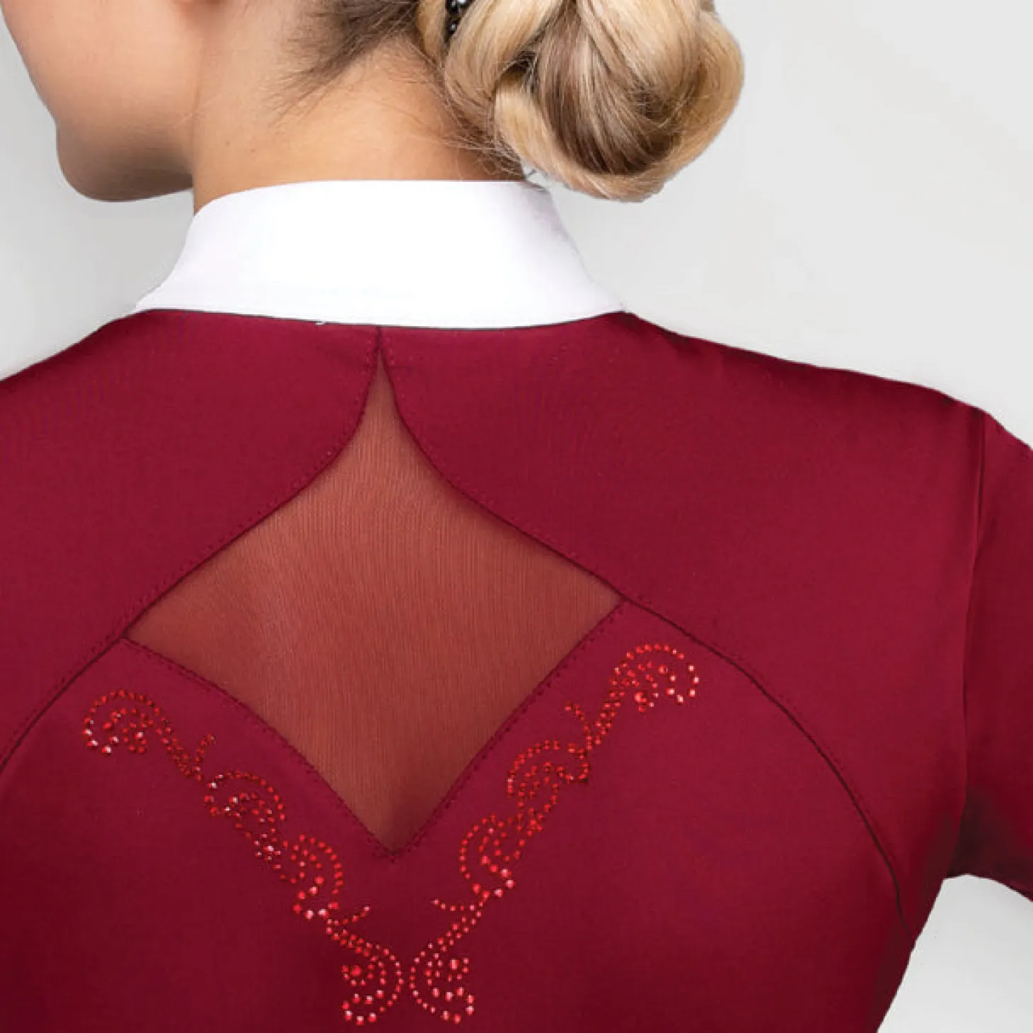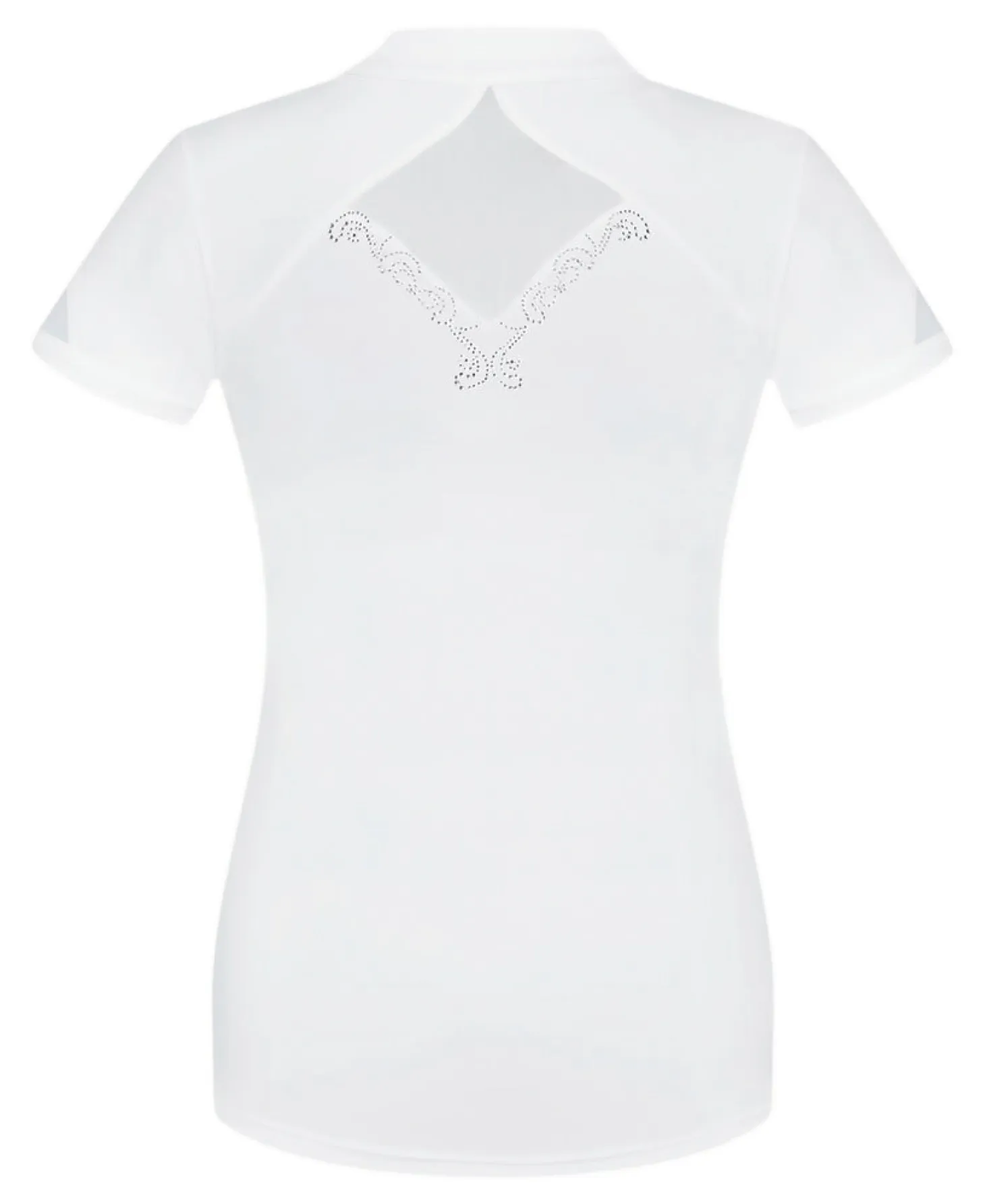 Discreet crystal applications accent the front and back. Proudly made in Poland, this beautiful competition top is suited for formal lessons and clinics as well as shows.