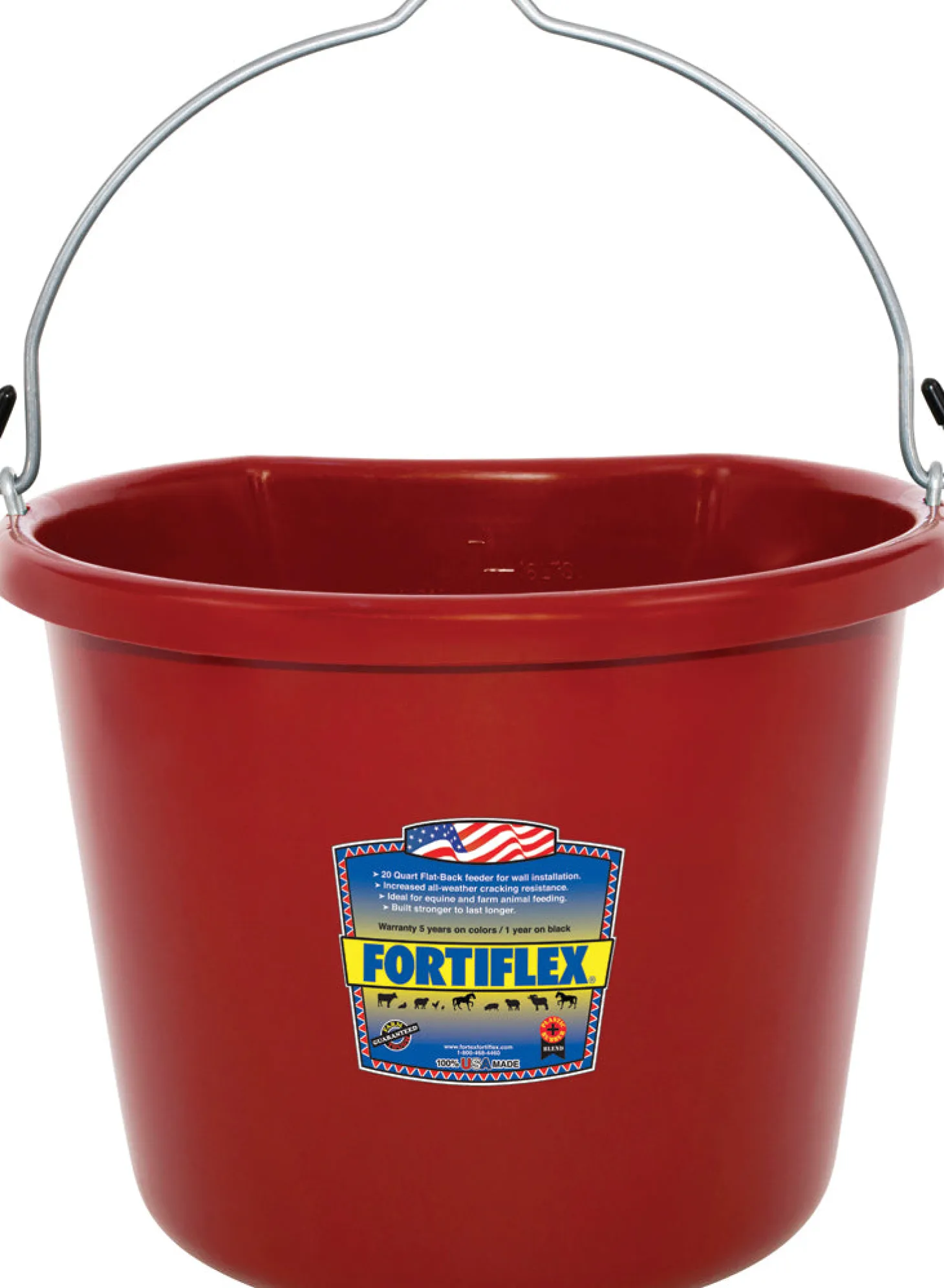 The Fortiflex® Standard 20-Quart Flatback Bucket stays flat against a wall or fence post, providing a stable container for watering or feeding your livestock. Made of heavy-duty FORTALLOY® rubber-polyethylene, it won’t crack or break even in extreme cold. Its economical price and assortment of colors makes this a smart choice for any stable.