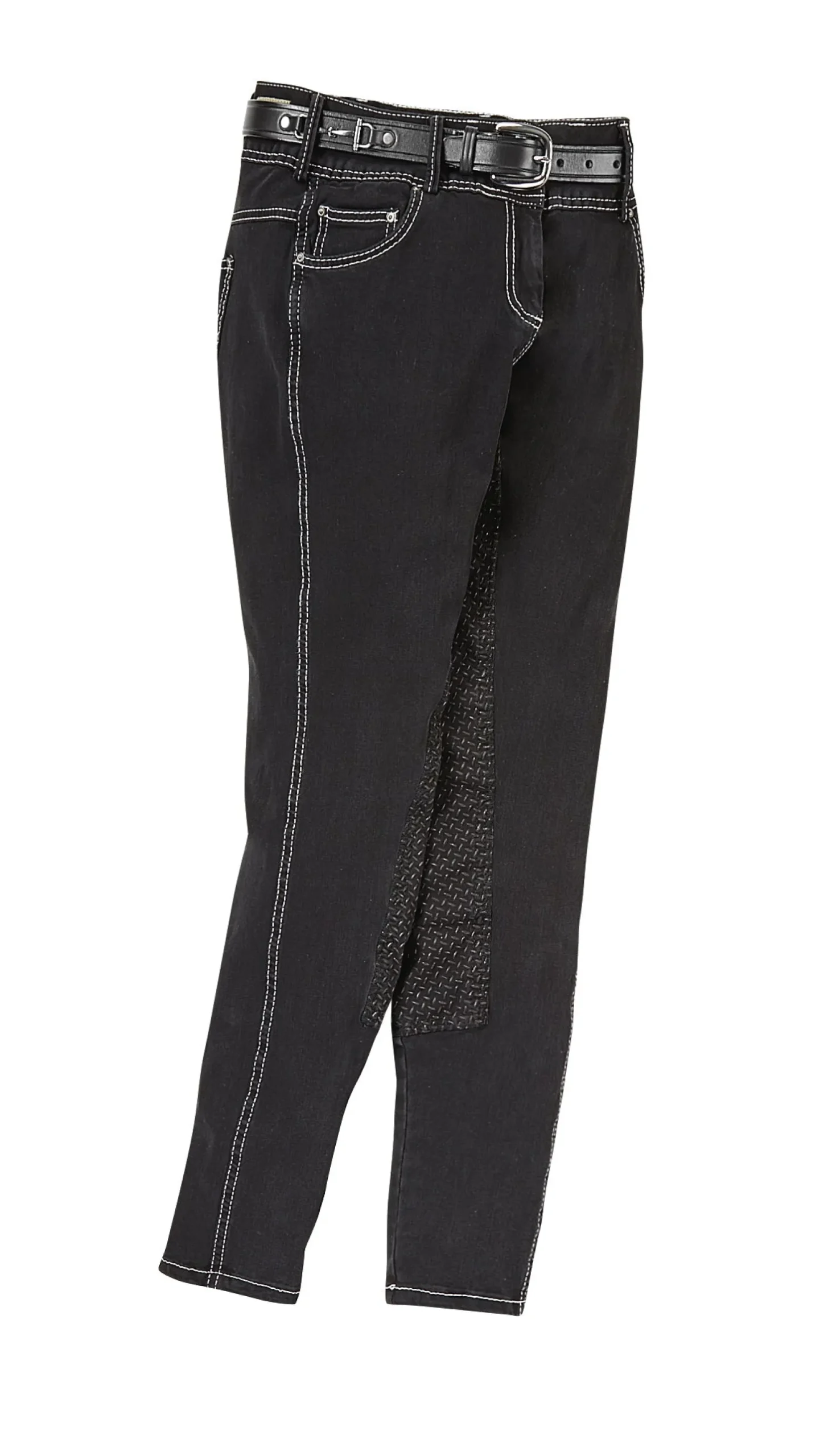 The Goode Rider™ Vogue Jean Full-Seat Breech has a soft, velvety touch and super stretch. It’s made from a newly developed fabric composed of specially twisted yarns that create its distinctively soft hand. Incredibly flattering with its mid-rise fit, the Vogue Jean breech boasts subtle embroidered whip detail on the back pockets. Embossed whips on the front snaps carry on this theme. Good Rider’s Stretch Custom Fit Waistband™ contours to your shape to provide added comfort and coverage for riding. A silicone full seat provides great grip. Extended sizes available.