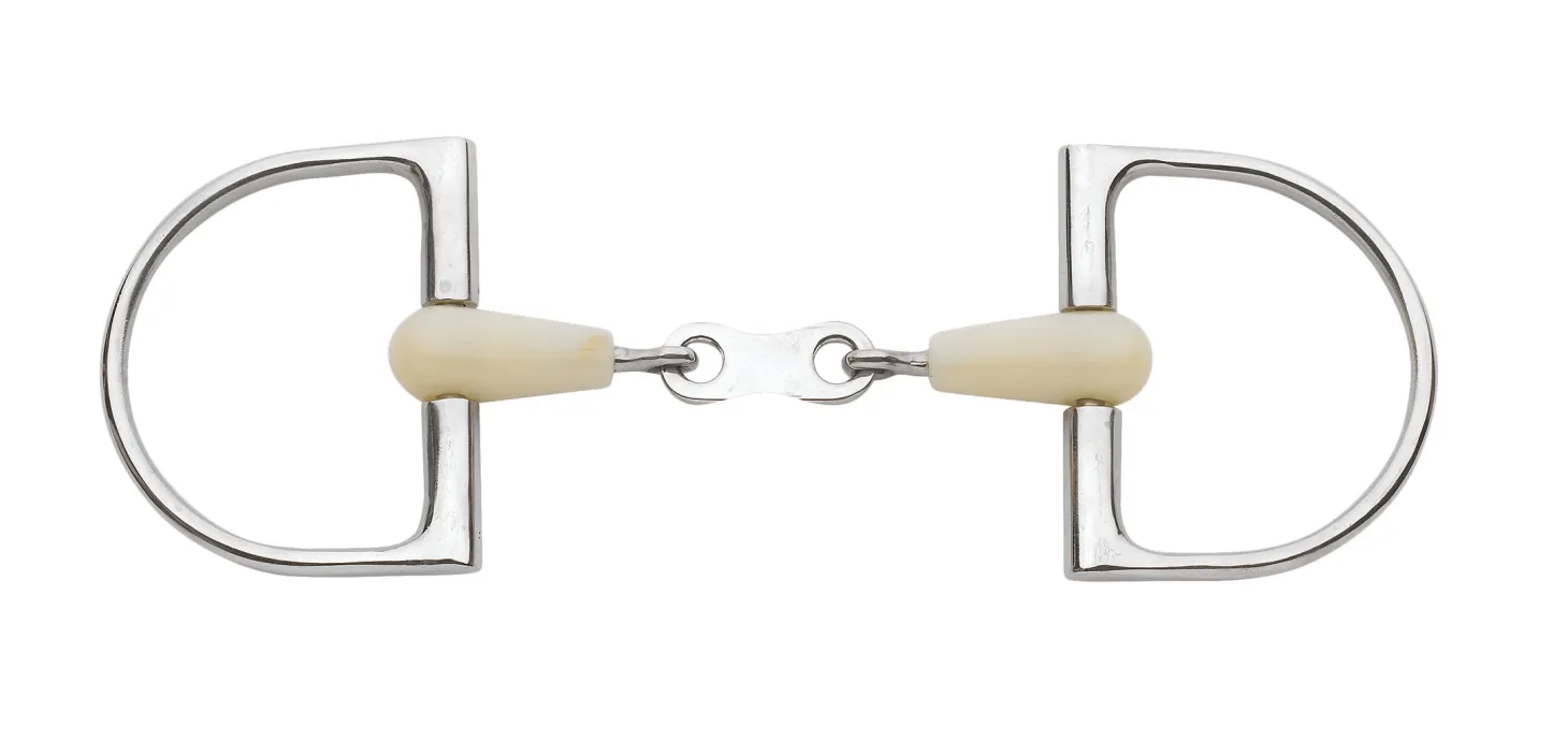 This is a mild bit design with a mouthpiece that some horses find more comfortable than a single-jointed snaffle as it puts pressure on the tongue rather than the bars. Dee rings offer some lateral stability.