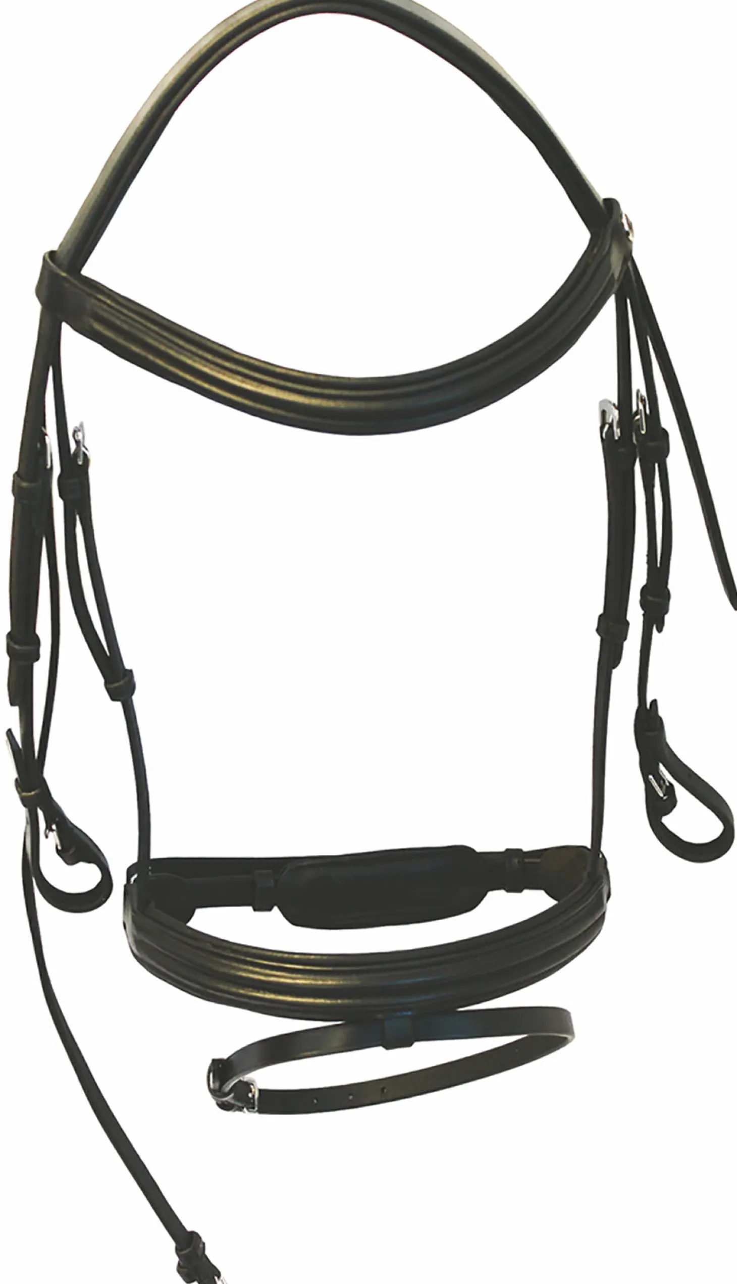PRODUCT DESCRIPTION: Henri De Rivel Padded Raised Dressage Bridle with Jawband Crank And Flash With Web Reins