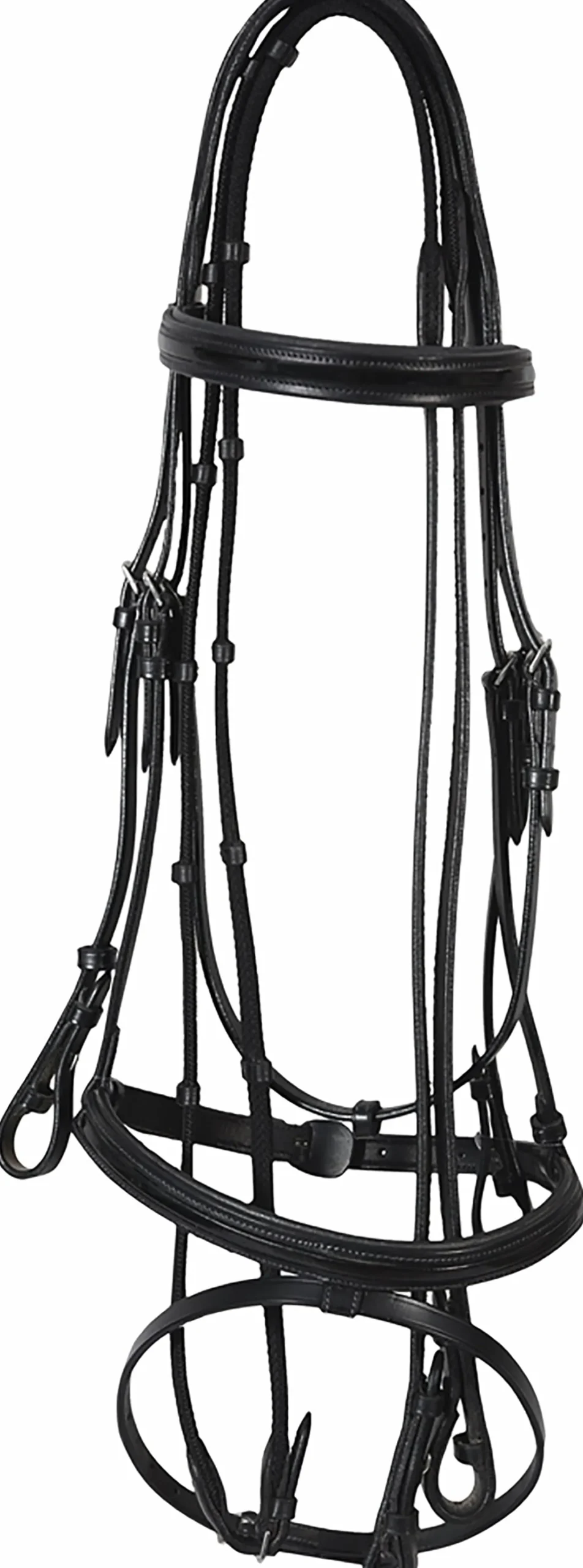 The Henri de Rivel Piaffe Mono Crown Bridle with Flash Noseband & Patent Leather is beautifully crafted with your horse′s comfort in mind. A padded, anatomically contoured single crownpiece distributes pressure equally across the poll.