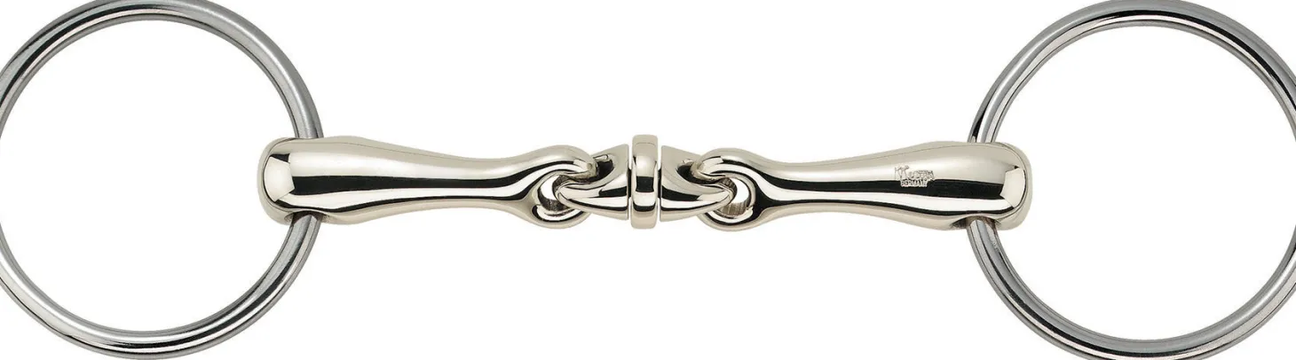 The Herm Sprenger WH Ultra Sensogan® Bradoon functions similarly to the KK Ultra bit, but features a smooth roller disk in the center. The slight up-and-down motion of the roller encourages the horse to play with it, which may be ideal for busy horses or those learning new skills. This bit is designed to lie perfectly in the mouth, resulting in soft and even pressure for maximum bit acceptance and optimal communication between horse and rider. This bit has an ergonomically formed curved 14mm mouthpiece and 55mm stainless steel rings.
