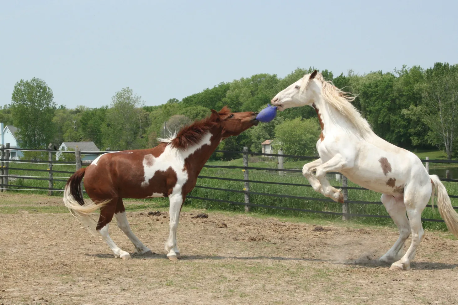 The Scented Jolly Ball® by Horsemen’s Pride™ is the ultimate horse toy—and ponies and dogs love it, too! Non-toxic, highly durable material comes in scents that appeal to equines. This horse ball never need air to retain its shape, and it resists punctures due to bites, stomps or kicks. The large attached handle makes it easy to grab. A great way to relieve boredom and stress, the Scented Jolly Ball is fun for pasture play as horses love to chase, roll and kick it. 10″ diameter. If you’re shopping for a dog, this size is ideal for medium to large dogs.