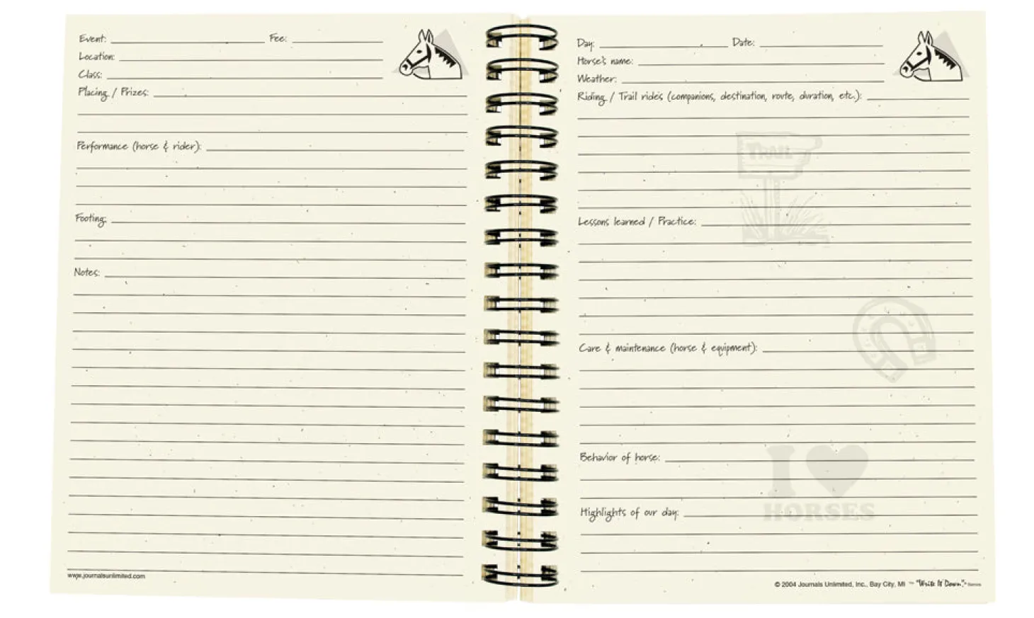 A fun and useful gift for any rider, this journal is printed in the USA on acid-free, recycled 70-pound paper using soy-based ink. It has a durable hard cover design and 200 pages.