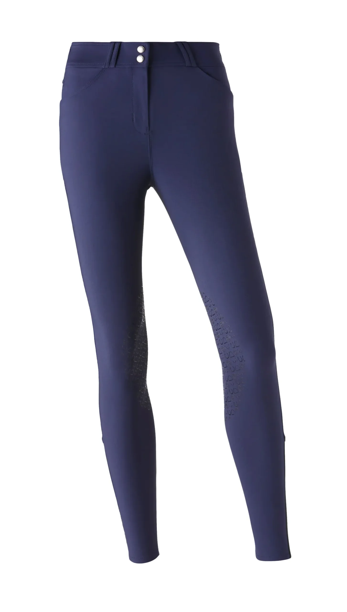 - Silicone grip knee patches in an equestrian-inspired print.