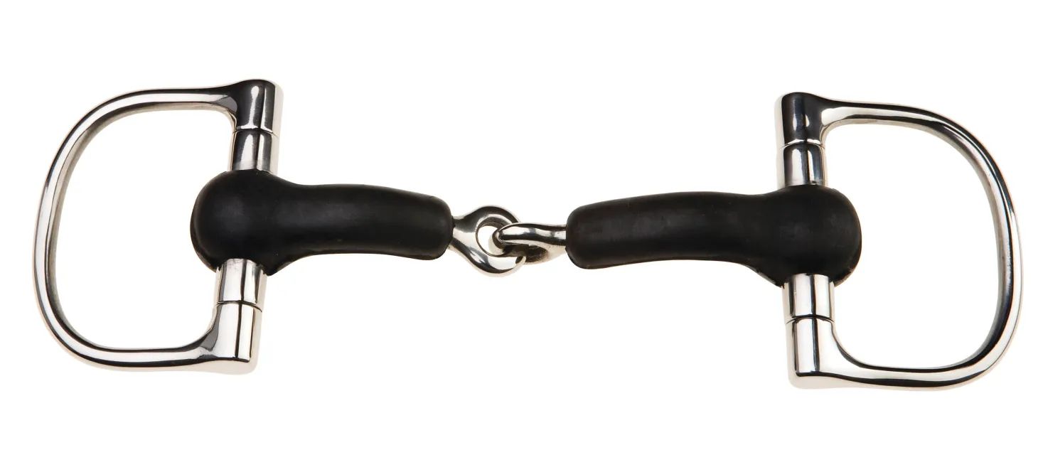 The JP by Korsteel® Rubber Racing Dee was designed with world-renowned Australian trainer, John Patterson, to provide maximum comfort and top performance. The curved mouthpiece eliminates interference and stops bit from hitting the roof of the mouth, allowing room for the tongue. Hand polished stainless steel. 16mm mouth; 75mm cheeks.