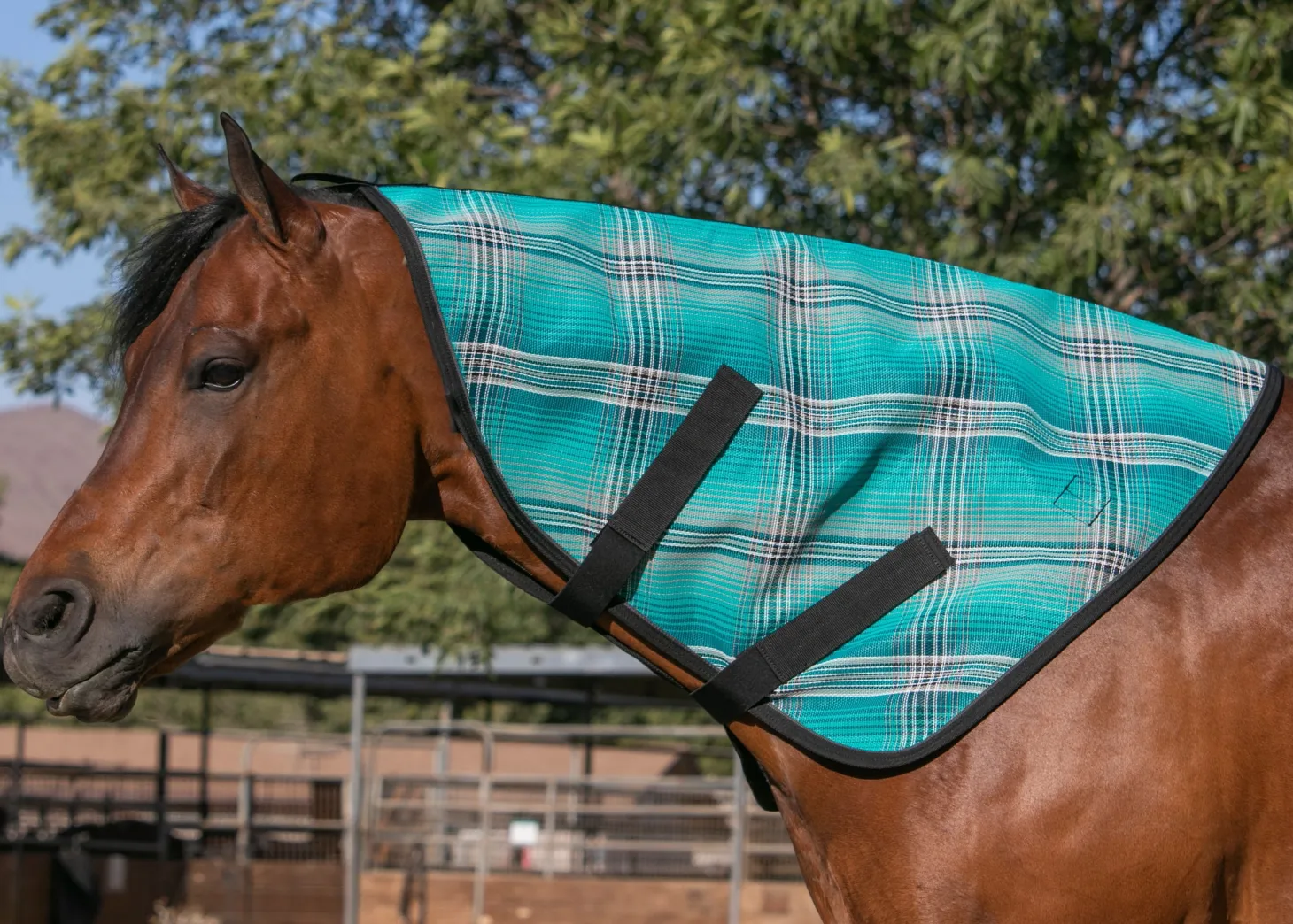 Designed to attach to the Kensington™ Surefit Textilene® Protective Sheet, this Kensington Textilene Neck Cover shields your horse’s neck from poll to withers yet allows freedom of movement.