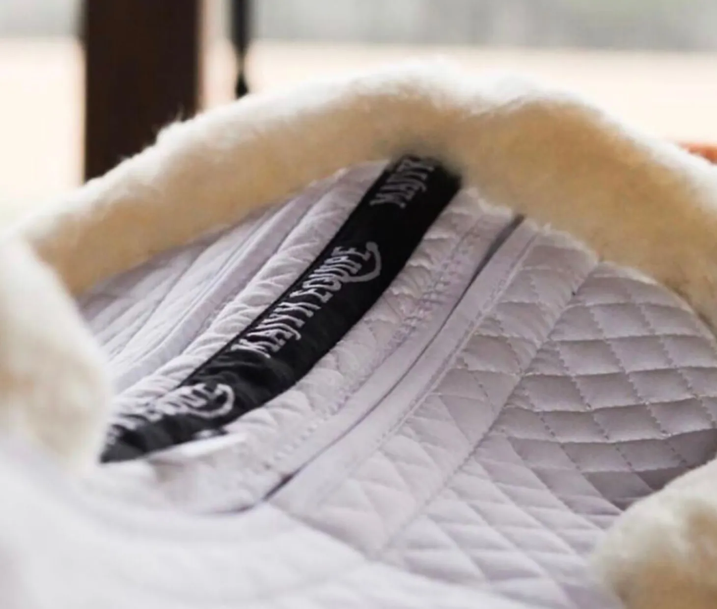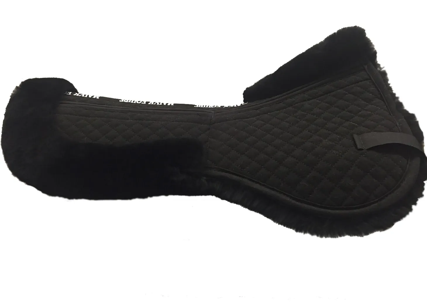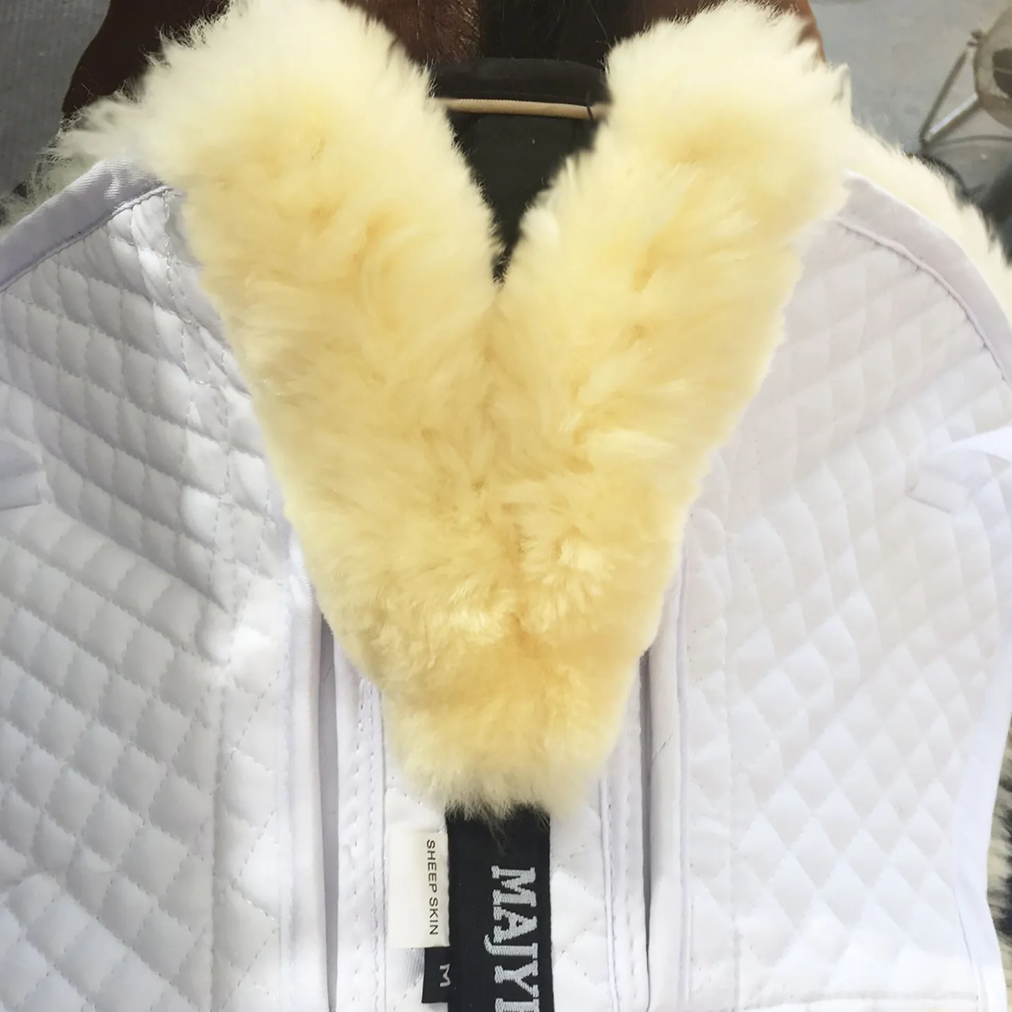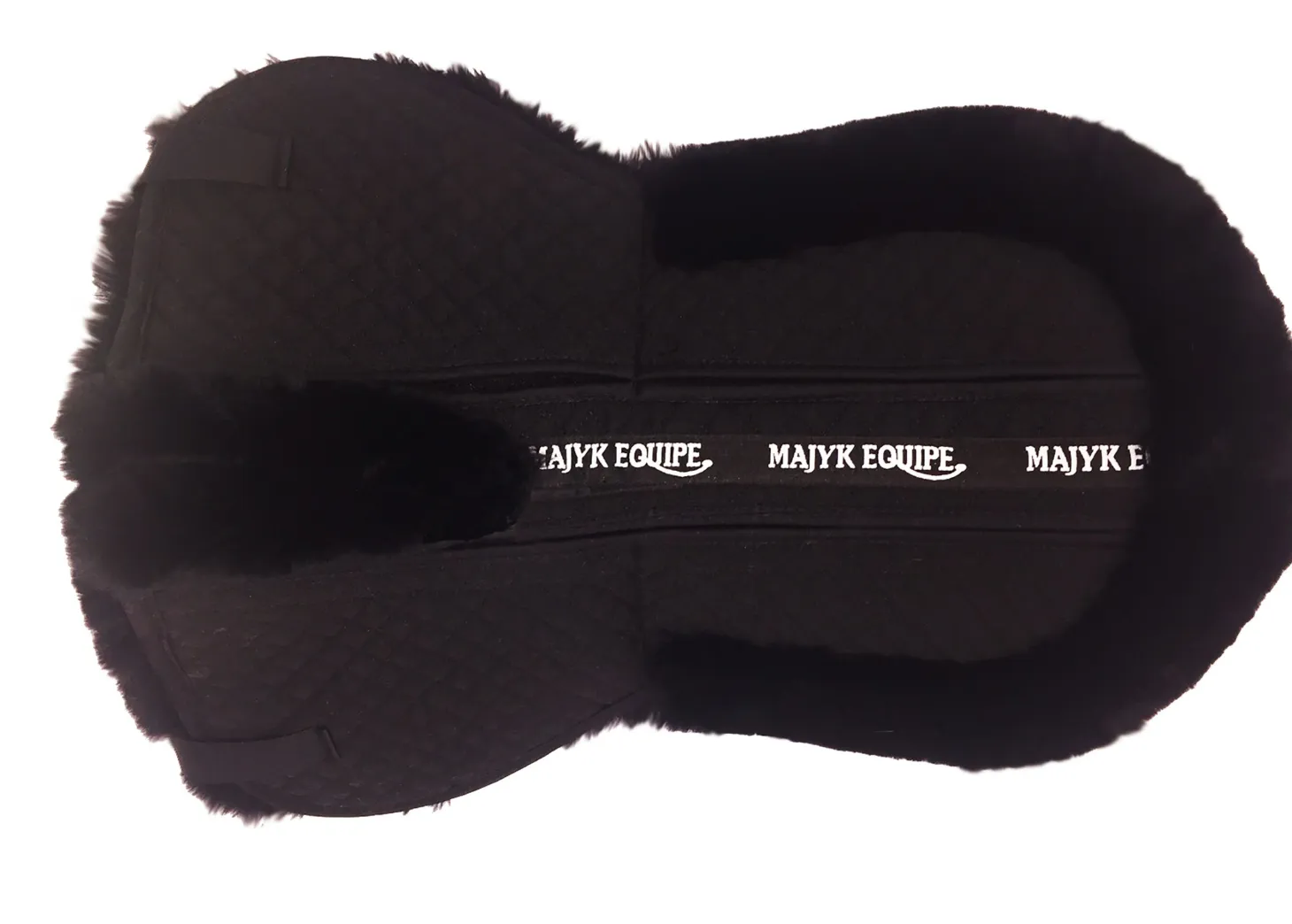 Customizable shims provide the ultimate combination of comfort and technology. Constructed from a high-loft, dense 1 1/4″ long 100% Australian fleece with lightweight fabric, the Majyk Equipe half pad combines natural cushioning and moisture wicking qualities of sheepskin with ultimate impact protection. The pad features unique Split Wither Relief technology to relieve pressure across the withers and Spine Relief along the underside of the pad.