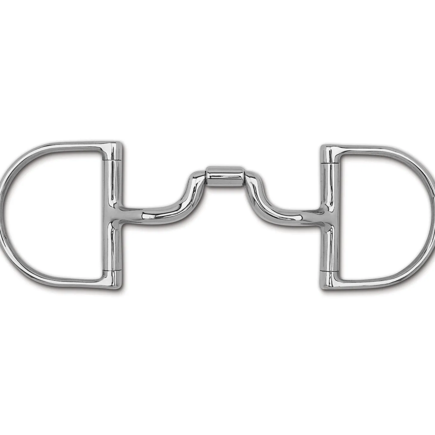 The dee without hooks is a traditional D-shaped cheek with fixed attachment of the mouthpiece. This style keeps the mouthpiece from draping on the tongue, providing a more direct signal than the loose ring. The straight side of the dee will not pull through the mouth and does not pinch.