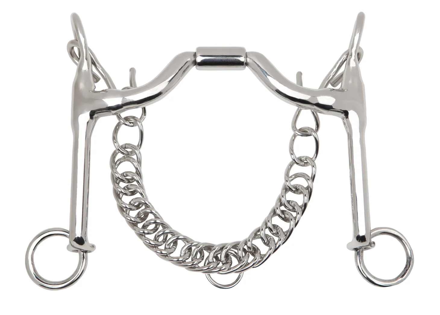 Designed for horses that are considered finished, it has a generously wide port that allows room for the tongue to pass under the bit and swallow. This mouthpiece applies little to no tongue pressure, working primarily off the bars, chin and poll.