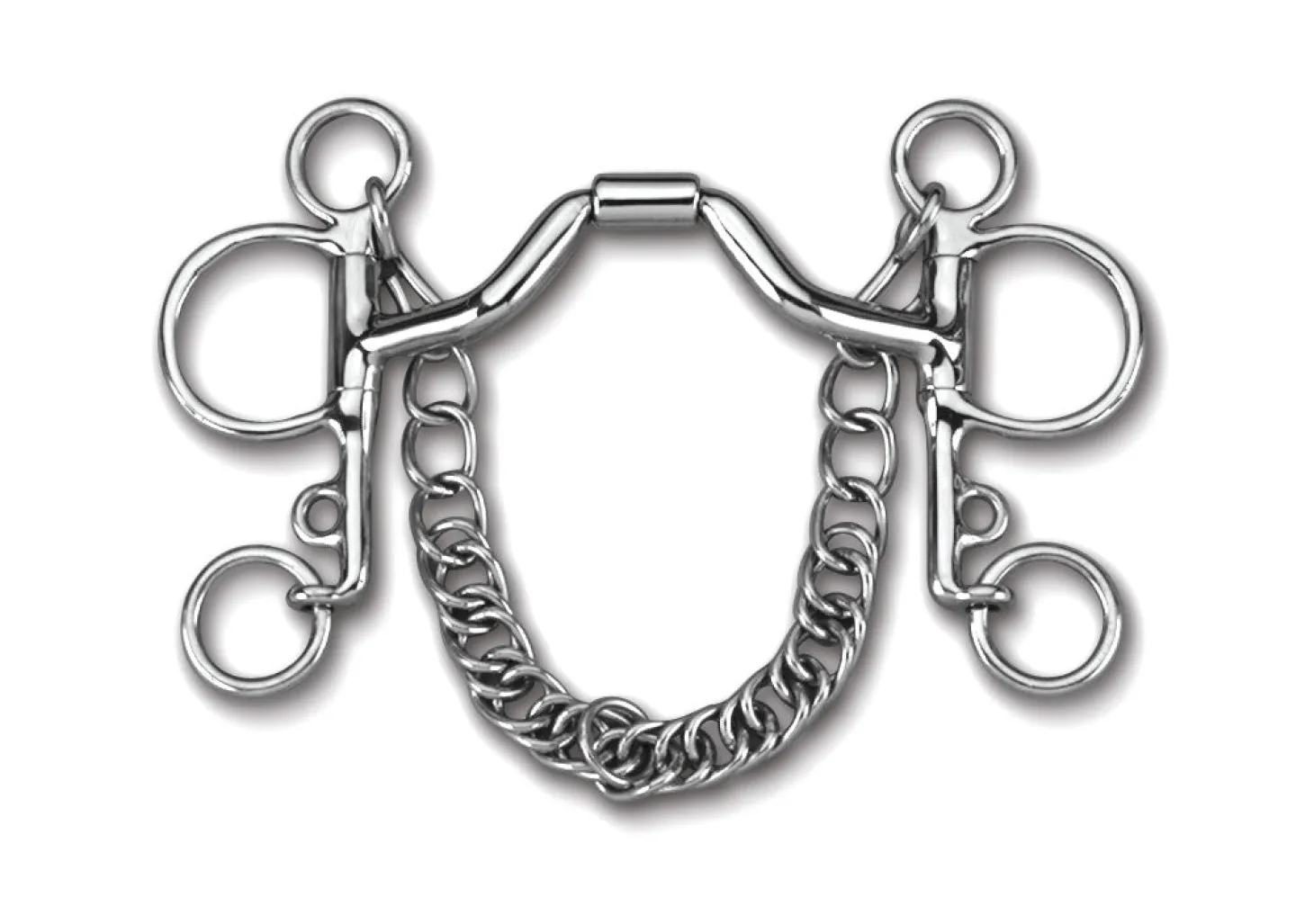 The Myler® Ported Barrel Pelham MB 33 has the mildest Myler mouthpiece. Designed for horses considered finished, it has a generously wide port that allows room for the tongue to pass under the bit and swallow. This mouthpiece applies little to no tongue pressure, working primarily off the bars, chin and poll. Stainless steel with copper inlay.