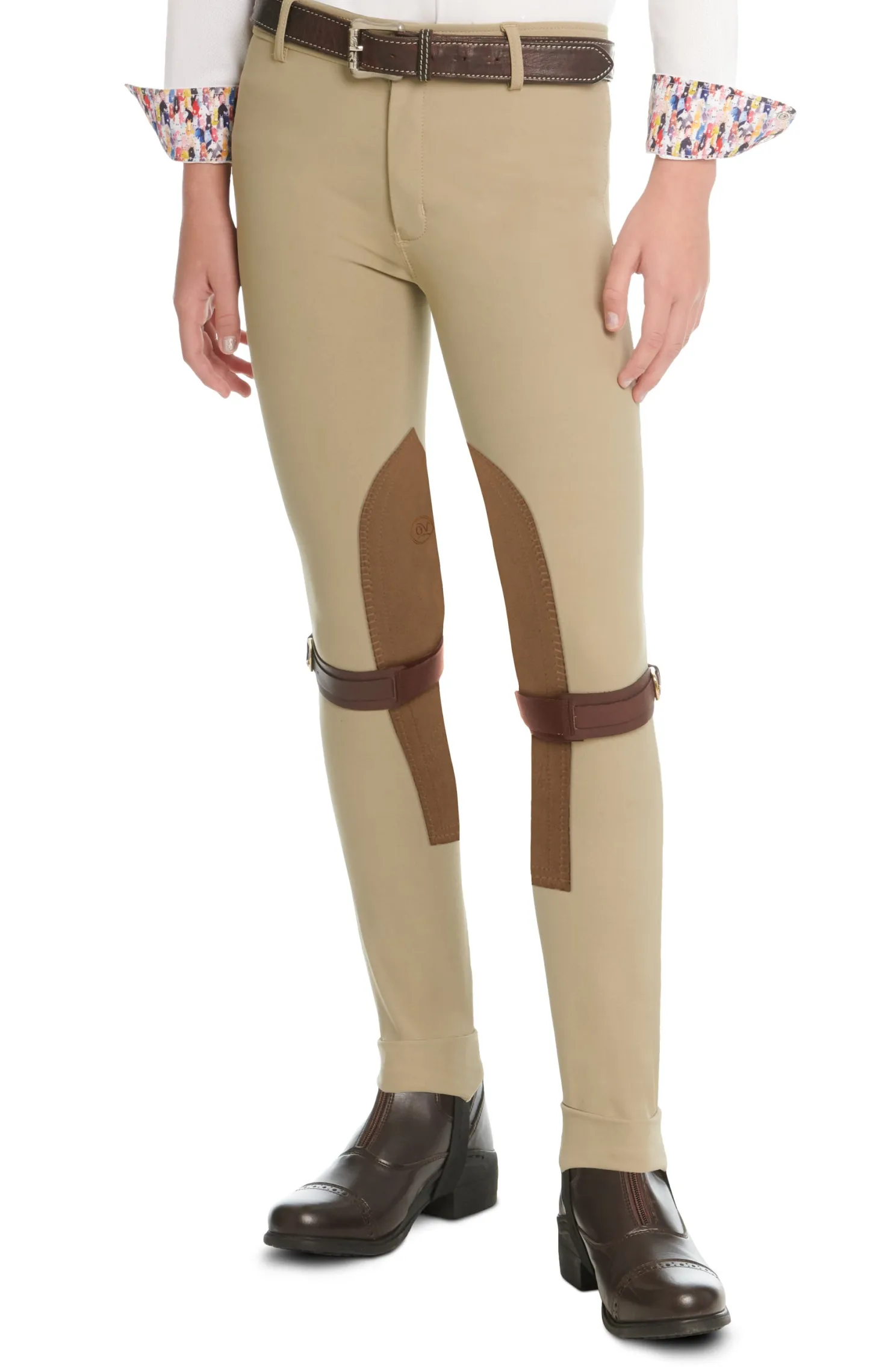 The Ovation® Children’s Bellissima Classic Knee-Patch Jod in woven, lightweight fabric offers an average shape from hip to thigh. Syn-Tech™ stretch synthetic suede knee patches add stability.