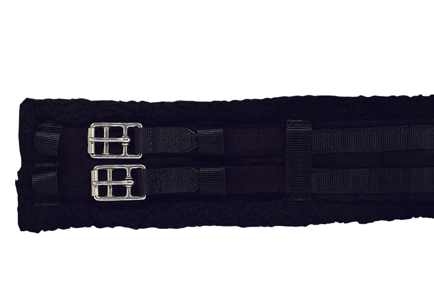 The Ovation® Dry-Tex® Dressage Equalizer Girth is moisture wicking to help keep your horse dry. The synthetic fleece lining is enhanced with Dry-Tex technology to pull moisture away from the skin. Stainless steel roller buckles with elastic at both ends.