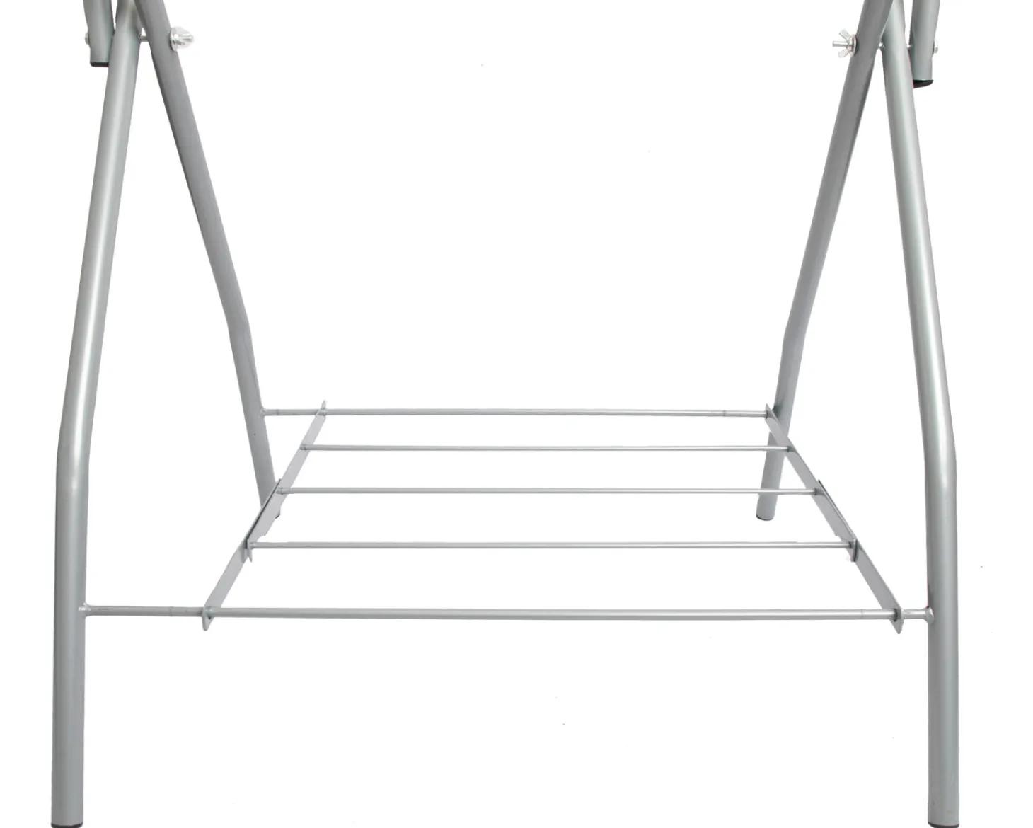 The top piece swivels down conveniently so a saddle can be positioned upside-down for easy cleaning of the gullet and flaps. A wire shelf holds tack cleaning supplies or saddle pads.