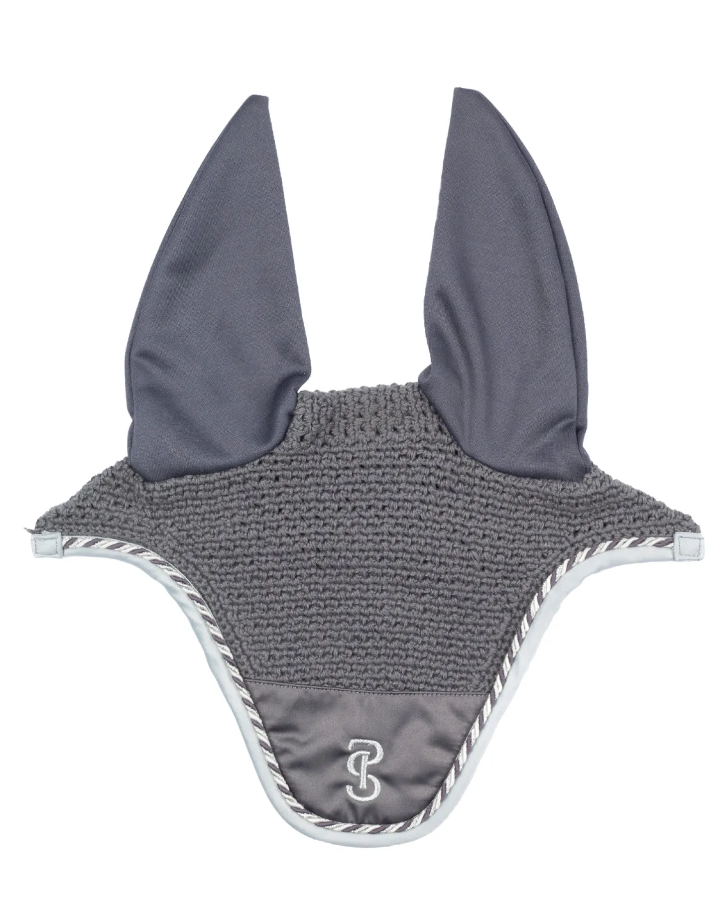 Designed to comfort sensitive horses, this fly veil features an array of decorative details, including braided rope trim, a fabric front embroidered with logo and soft fabric trim.