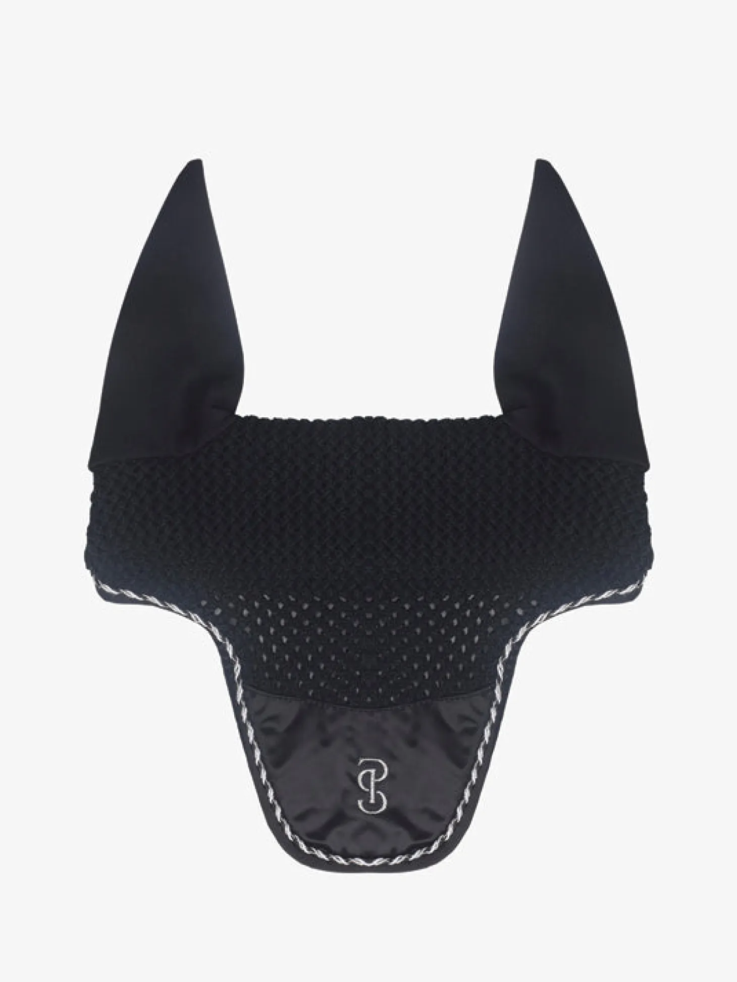 The PS of Sweden Signature Ear Bonnet has a shapely fit and elasticized ear covers. This fly bonnet is made from stretchy, breathable, antibacterial quick-dry material with a hand-knitted crochet body. Designed to comfort sensitive horses, it features decorative details, including braided rope trim, a fabric front embroidered with logo and soft fabric trim.