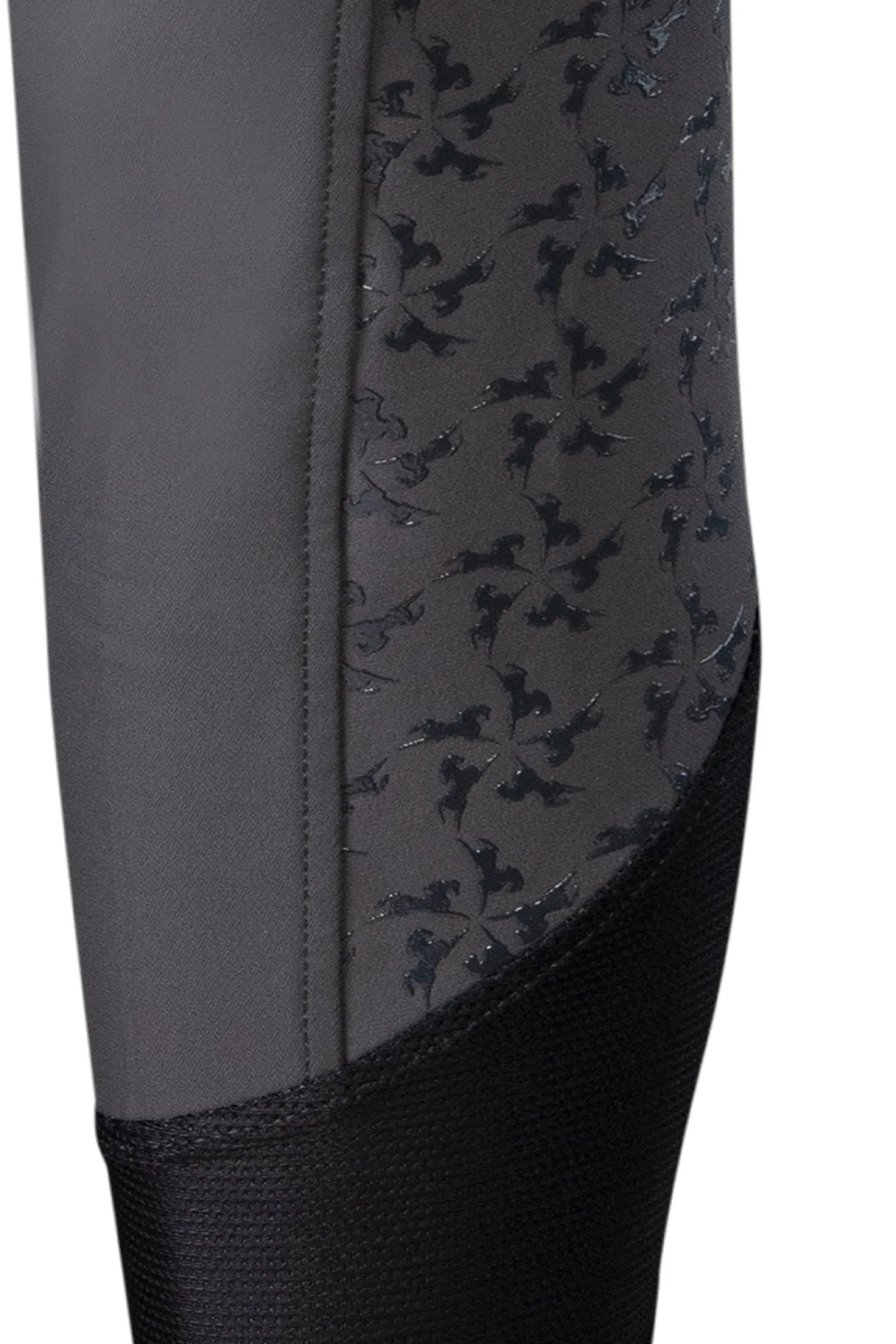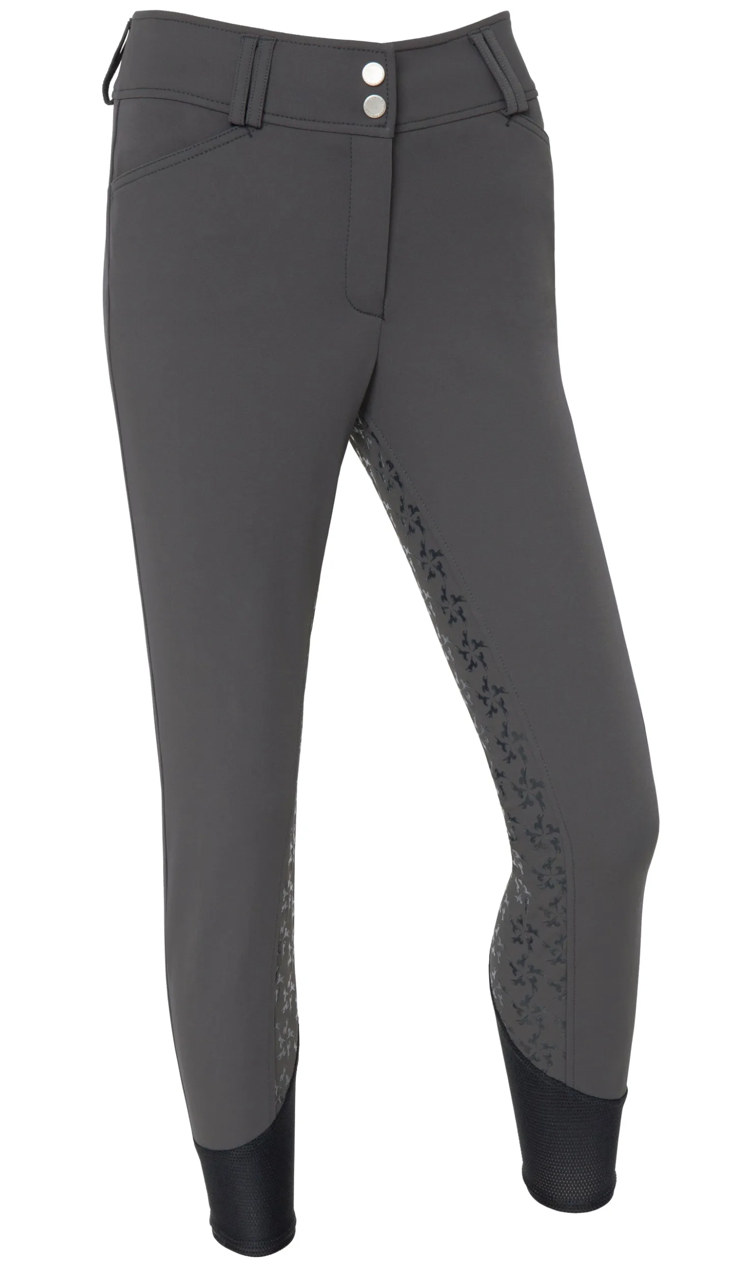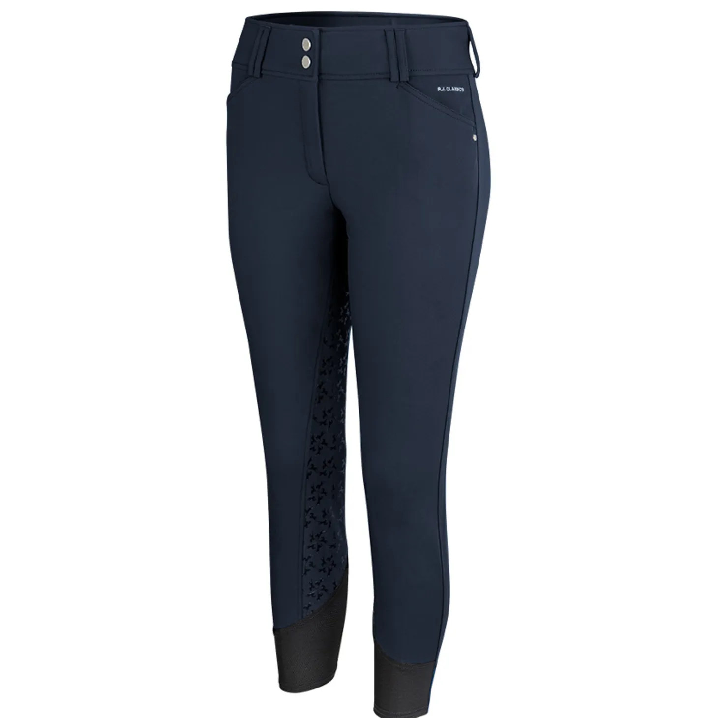 The R.J. Classics Aria Silicone Full-Seat Breech is an attractive, premium-quality style that offers grip with a unique R.J. pinwheel design. The R.J. logo is created in a silicone pattern for a full seat that is fun and effective. Quick-dry stretch fabric offers an amazing feel, sculpting and coverage. Covered waistband is smooth against your skin and has a silicone interior logo to keep your shirt tucked.