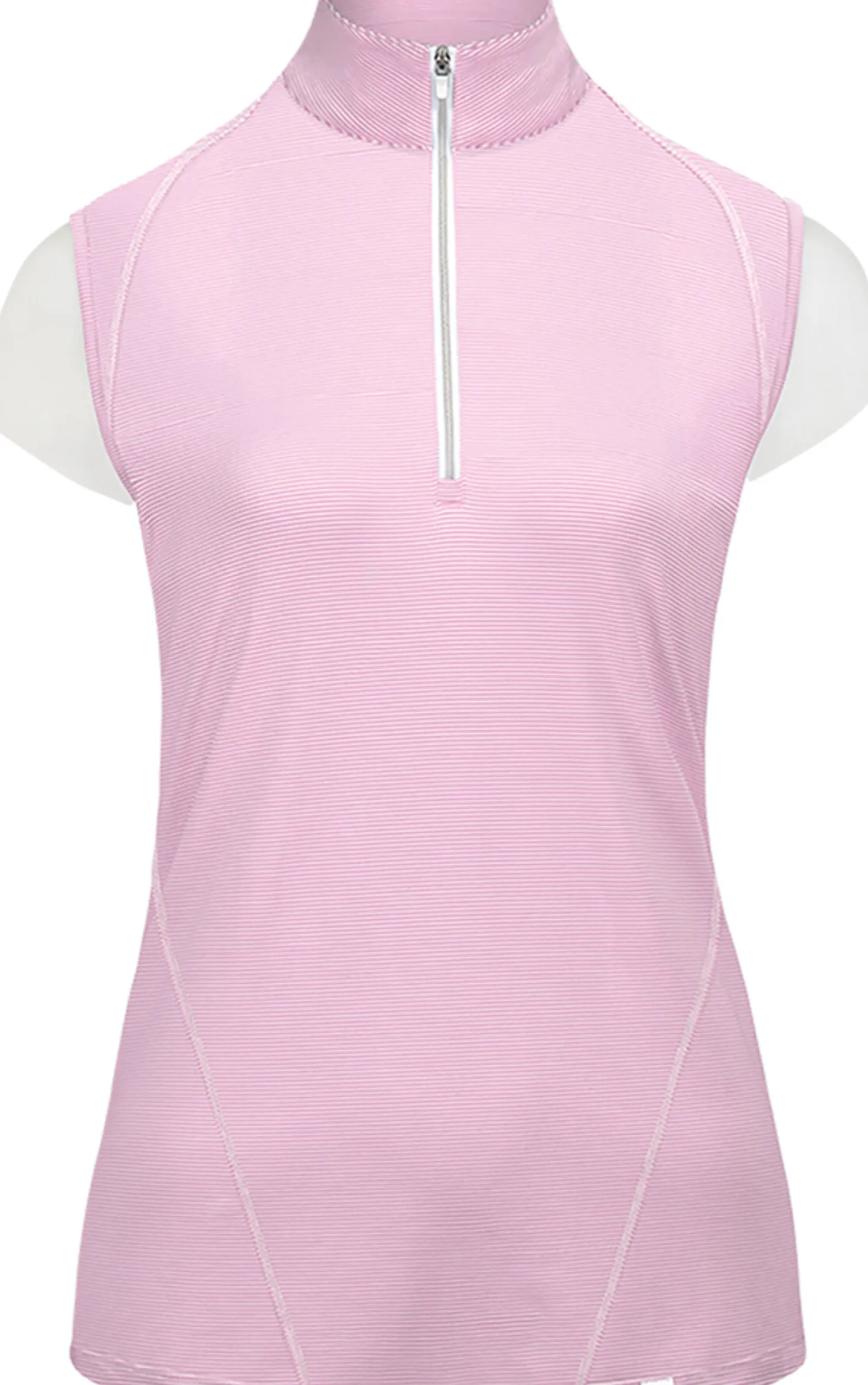 The R.J. Classics Hallie Sleeveless Quarter-Zip Training Shirt is a great choice on hot days. The subtle stripe pattern gives it a modern yet timeless look. The moisture-wicking fabric rated UPF 50 feels luxuriously soft and stretchy.