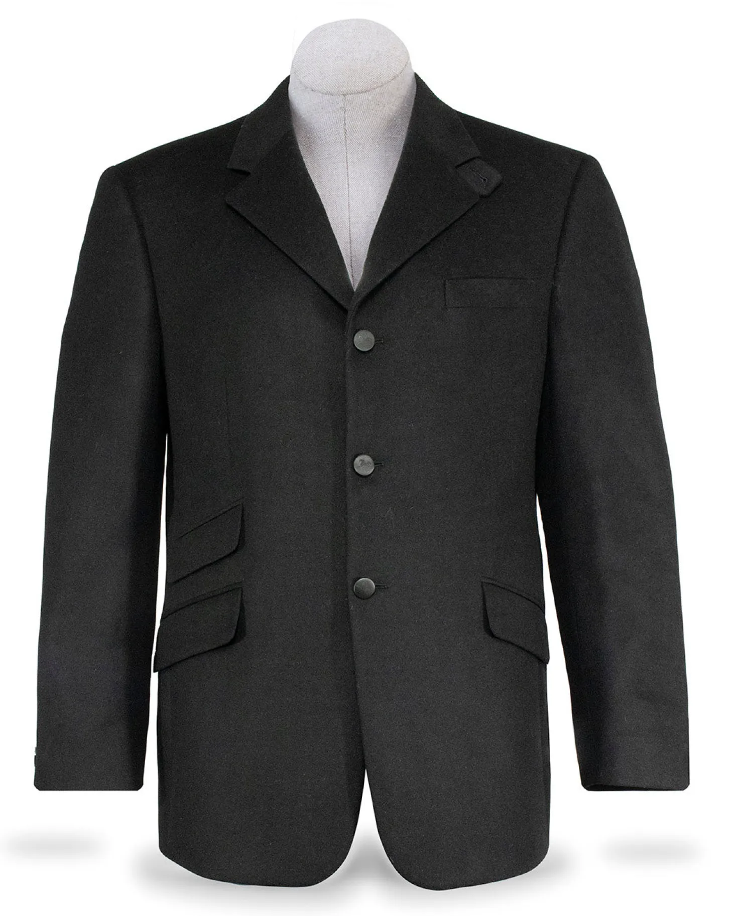 R.J. Classics Men’s Knight Melton Hunt Coat has a timeless look with three-button front and single-vent back. Made of medium-weight, fine Italian Melton fabric, this formal men’s hunt style also has a detachable collar tab and a solid black lining.