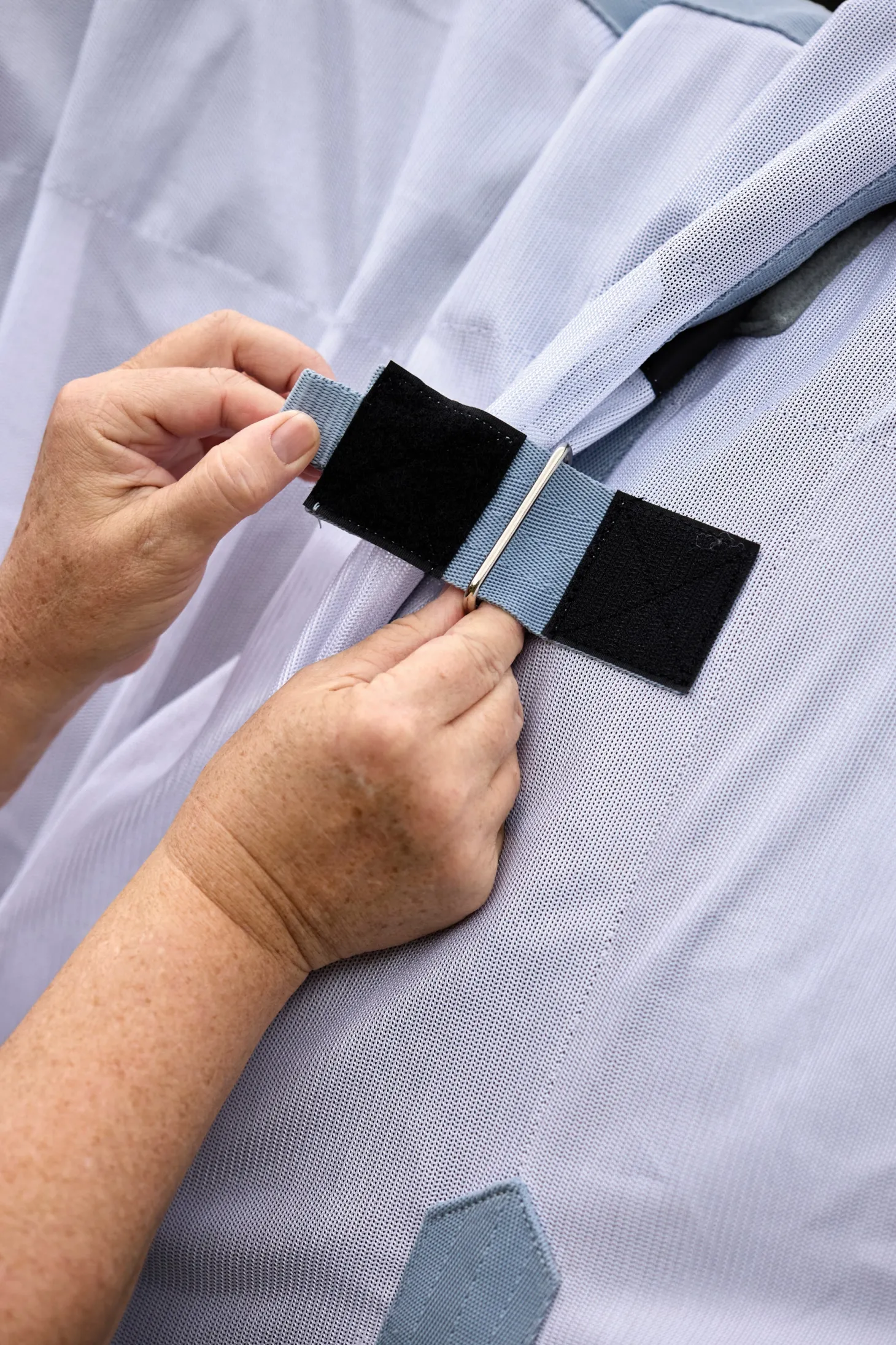 The Rider’s International™ Light Mesh Fly sheet is perfect for summer. An affordable option that keeps your horse comfortably cool. 70% UV protection. It stays secure with double surcingles and front closures. Lined shoulders prevent rubs and shoulder gussets add freedom of movement. Contoured detachable neck with Velcro® closures and a stiff binding to keep it from sliding down.