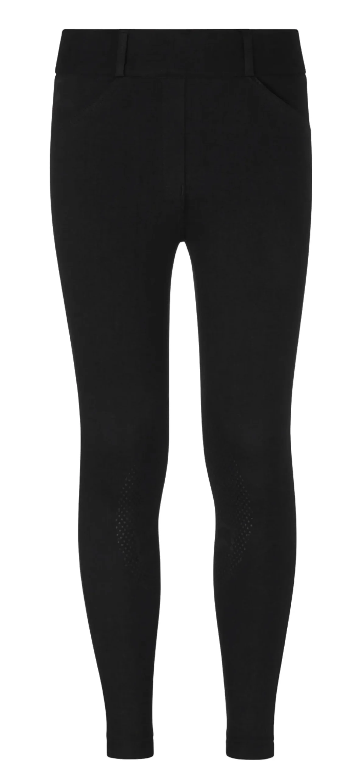 The pull-on waistband is comfortable and flattering, while the faux-fly front and belt loops offer the appearance of a classic breech. Elastic taped cuffs prevent the breech legs from riding up.