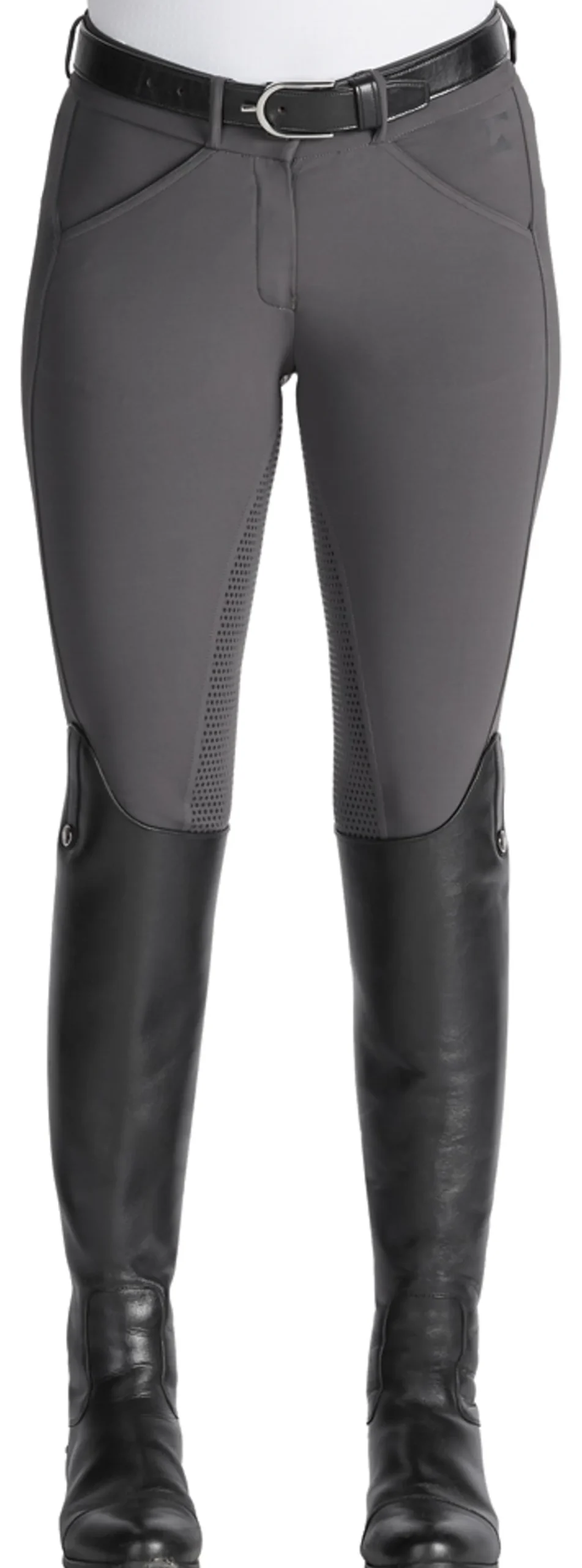 It is suitable for both schooling and showing. The EquiTrue™ Rise ensures a mid-rise fit that stays true to your form with every movement. Front pockets are sized to hold a cellphone.
