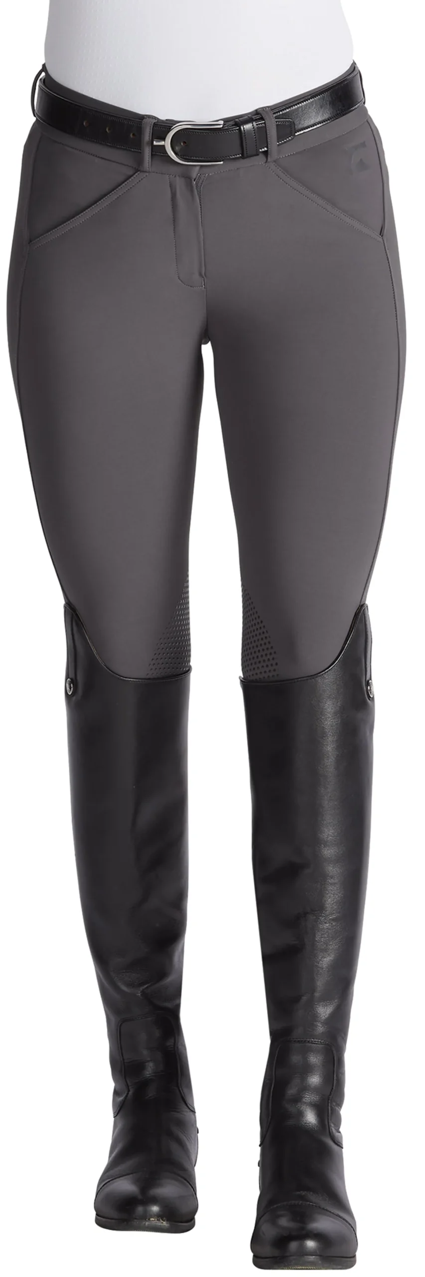It is suitable for both schooling and showing. The EquiTrue™ Rise ensures a mid-rise fit that stays true to your form with every movement. Front pockets are sized to hold a cellphone.
