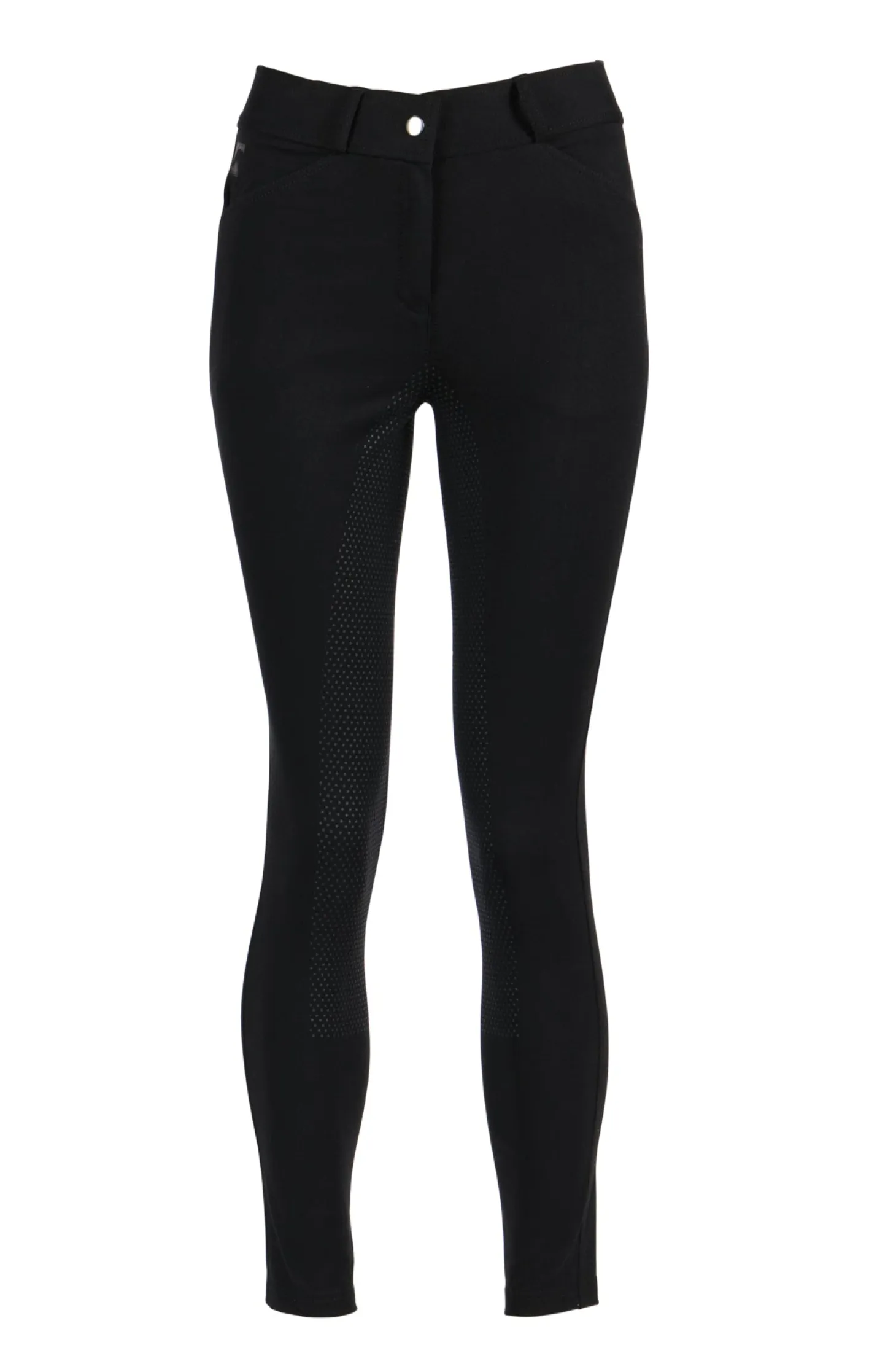 The Riding Sport Schooling Full-Seat Breech has all the wonderful qualities of cotton in a traditional breech. Soft, breathable and wicking with stretch to boost your freedom of movement. Mid-weight with a mid-rise waist and belt loops. Two front slash pockets and a silicone dot pattern for extra grip. Easy care fabric.