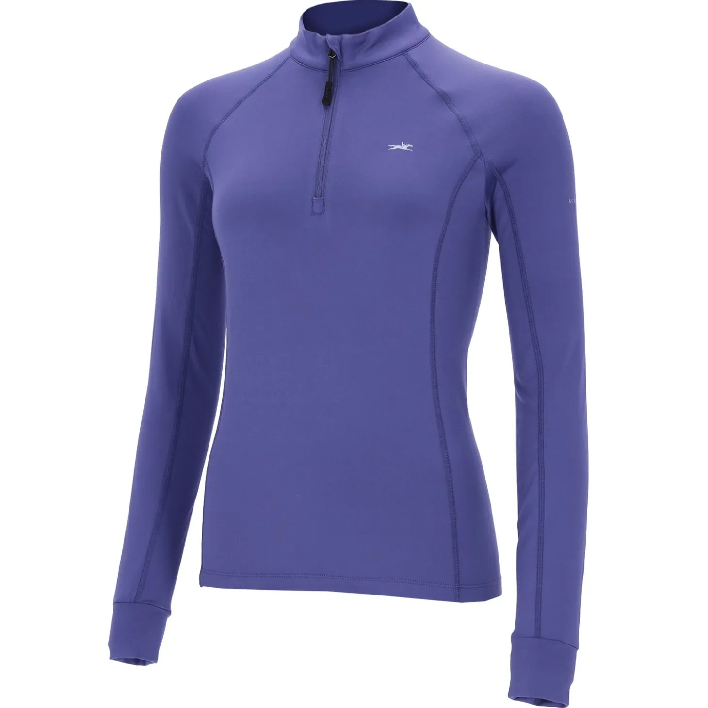 Schockemöhle SpWinter Page Long-Sleeve Shirt is a functional and soft training shirt for everyday. Flattering fit with dividing seams and raglan sleeves with overlocked stitching. Stand-up collar, front zip and logo print on back, chest and left sleeve.