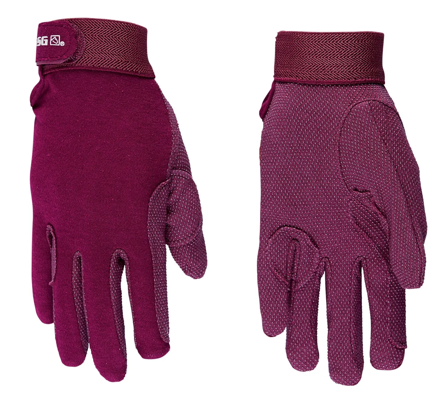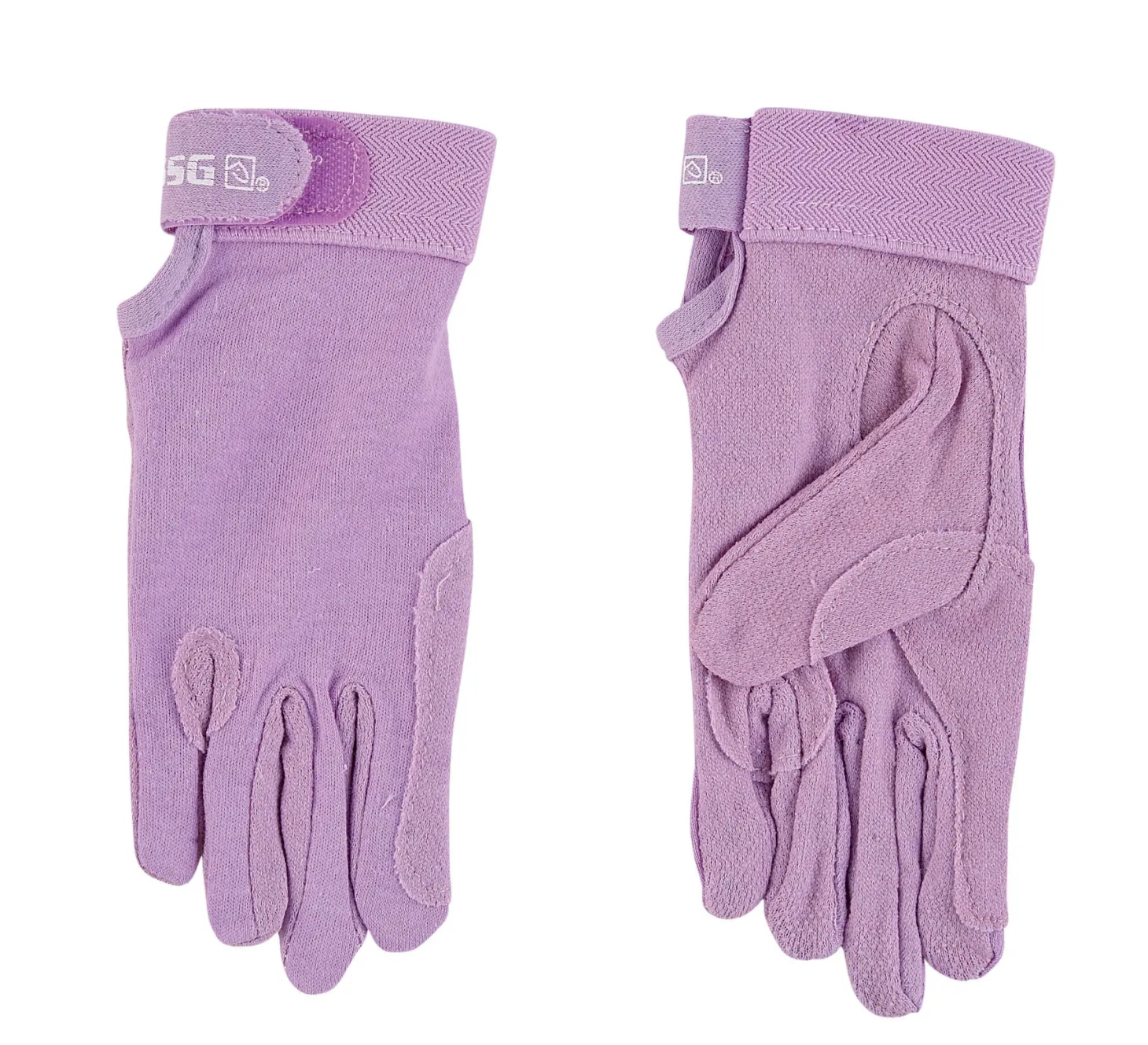 Functional, comfortable and economical! The SSG® Gripper® Riding Gloves are lightweight and cotton-backed—and come in so many fun colors you′ll want a pair for each day of the week. Pimpled, rubberized grips on palm and fingers help you keep a firm hold on your reins while a hook-and-loop fastener at the wrist keeps them secure.